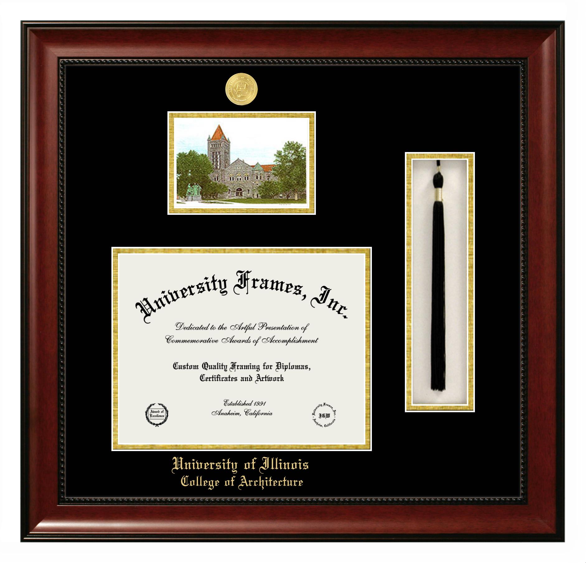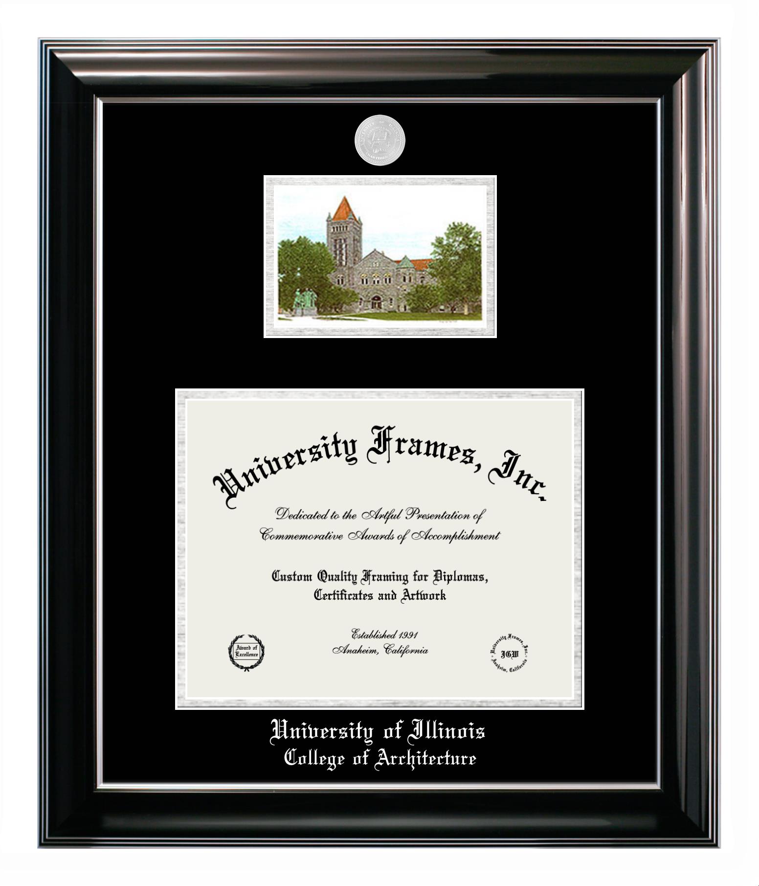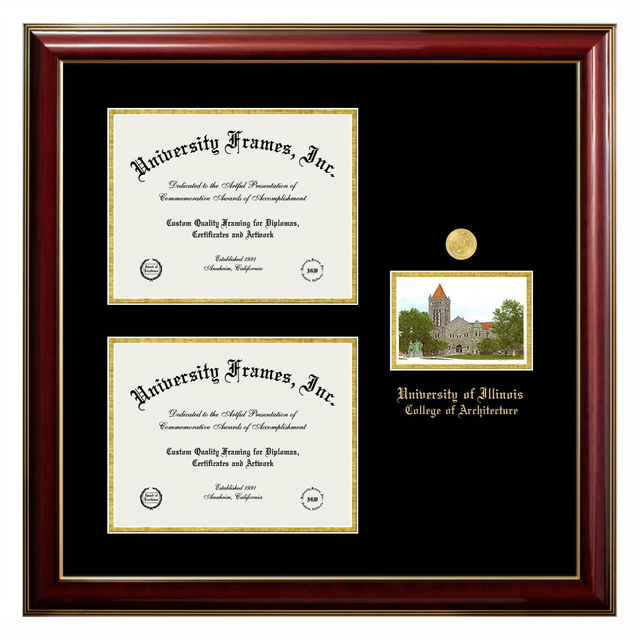 Are you a recent University of Illinois College of Architecture graduate or are you looking for a special graduation gift idea for a recent grad? Our official University of Illinois College of Architecture diploma frames and degree frames are perfect for preserving and displaying any hard-earned diploma. Our custom diploma frames are specifically made with the official University of Illinois College of Architecture seal and are handcrafted with the utmost attention to detail. Start building your graduation frame now!