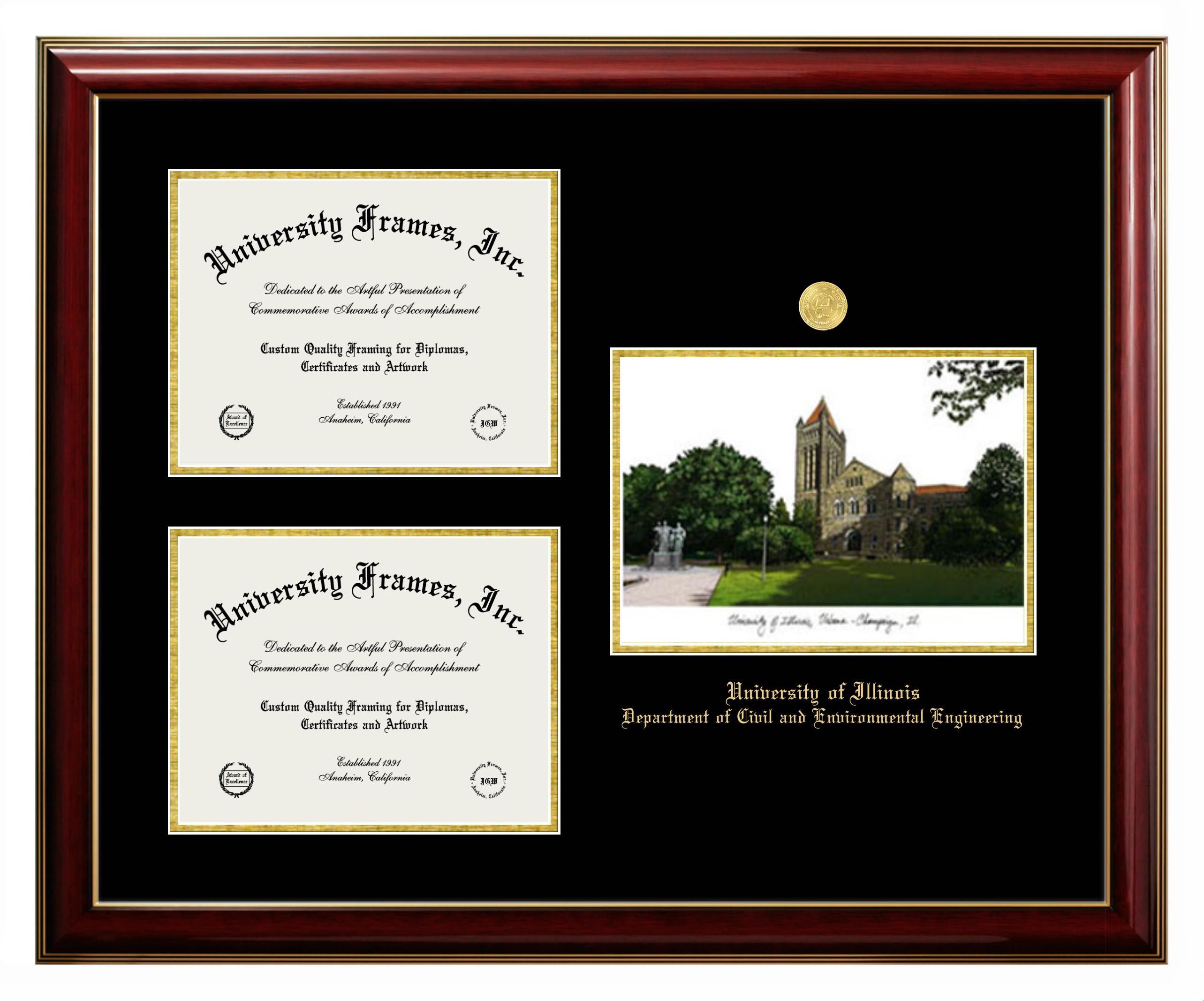 Are you a recent University of Illinois Department of Civil and Environmental Engineering graduate or are you looking for a special graduation gift idea for a recent grad? Our official University of Illinois Department of Civil and Environmental Engineering diploma frames and degree frames are perfect for preserving and displaying any hard-earned diploma. Our custom diploma frames are specifically made with the official University of Illinois Department of Civil and Environmental Engineering seal and are handcrafted with the utmost attention to detail. Start building your graduation frame now!