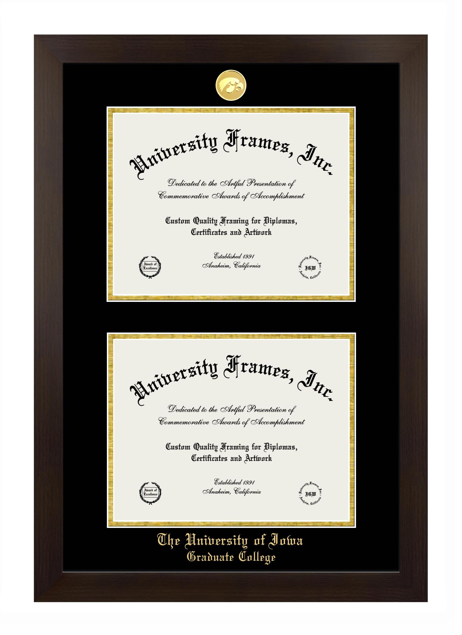 We believe that earning a degree is a huge accomplishment and showcasing it is important. Therefore, if you are looking for University of Iowa Graduate College diploma or degree frames for yourself or a recent University of Iowa Graduate College grad, we are sure you will love our custom diploma frames. Our diploma frames are made with the official University of Iowa Graduate College seal and are beautifully crafted. Start designing your frame now!