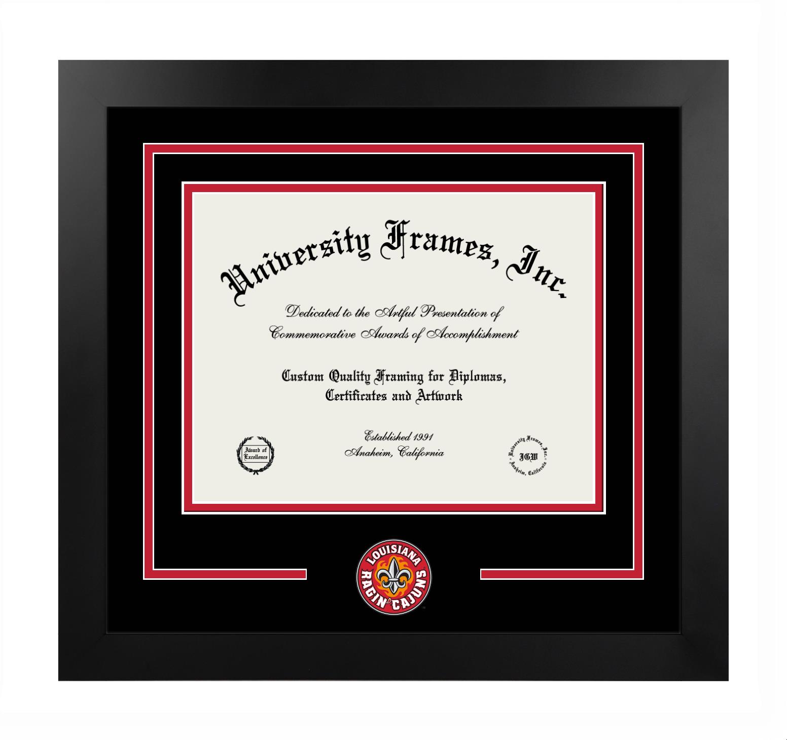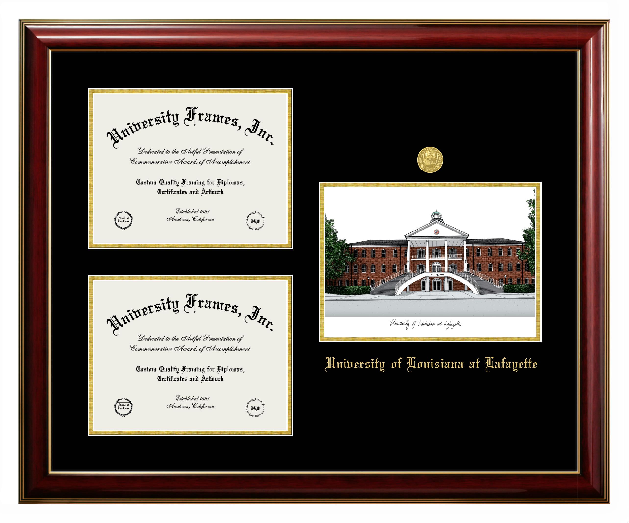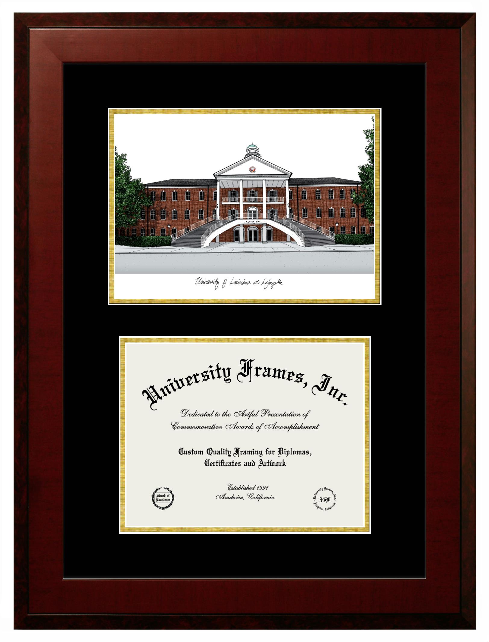 We believe that earning a degree is a huge accomplishment and showcasing it is important. Therefore, if you are looking for University of Louisiana at Lafayette diploma or degree frames for yourself or a recent University of Louisiana at Lafayette grad, we are sure you will love our custom diploma frames. Our diploma frames are made with the official University of Louisiana at Lafayette seal and are beautifully crafted. Start designing your frame now!