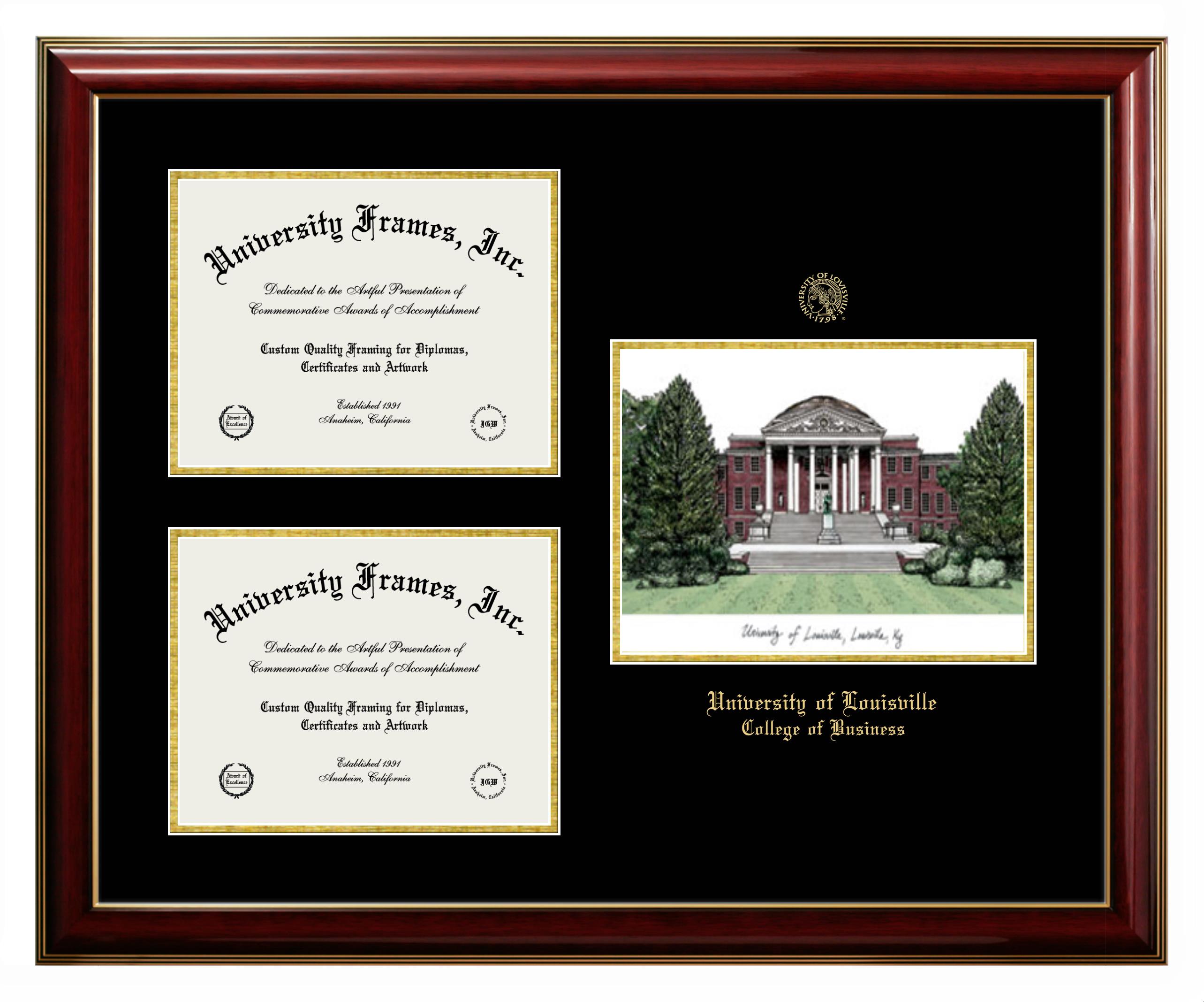 We believe that earning a degree is a huge accomplishment and showcasing it is important. Therefore, if you are looking for University of Louisville College of Business diploma or degree frames for yourself or a recent University of Louisville College of Business grad, we are sure you will love our custom diploma frames. Our diploma frames are made with the official University of Louisville College of Business seal and are beautifully crafted. Start designing your frame now!