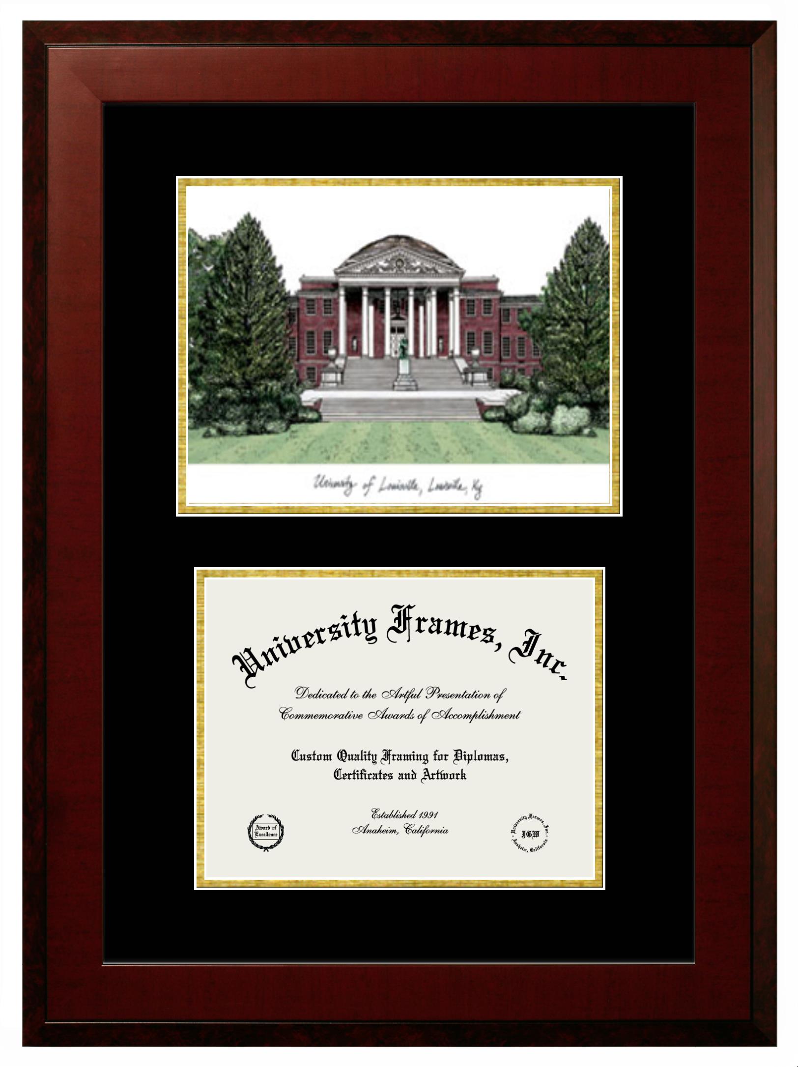 We believe that earning a degree is a huge accomplishment and showcasing it is important. Therefore, if you are looking for University of Louisville diploma or degree frames for yourself or a recent University of Louisville grad, we are sure you will love our custom diploma frames. Our diploma frames are made with the official University of Louisville seal and are beautifully crafted. Start designing your frame now!