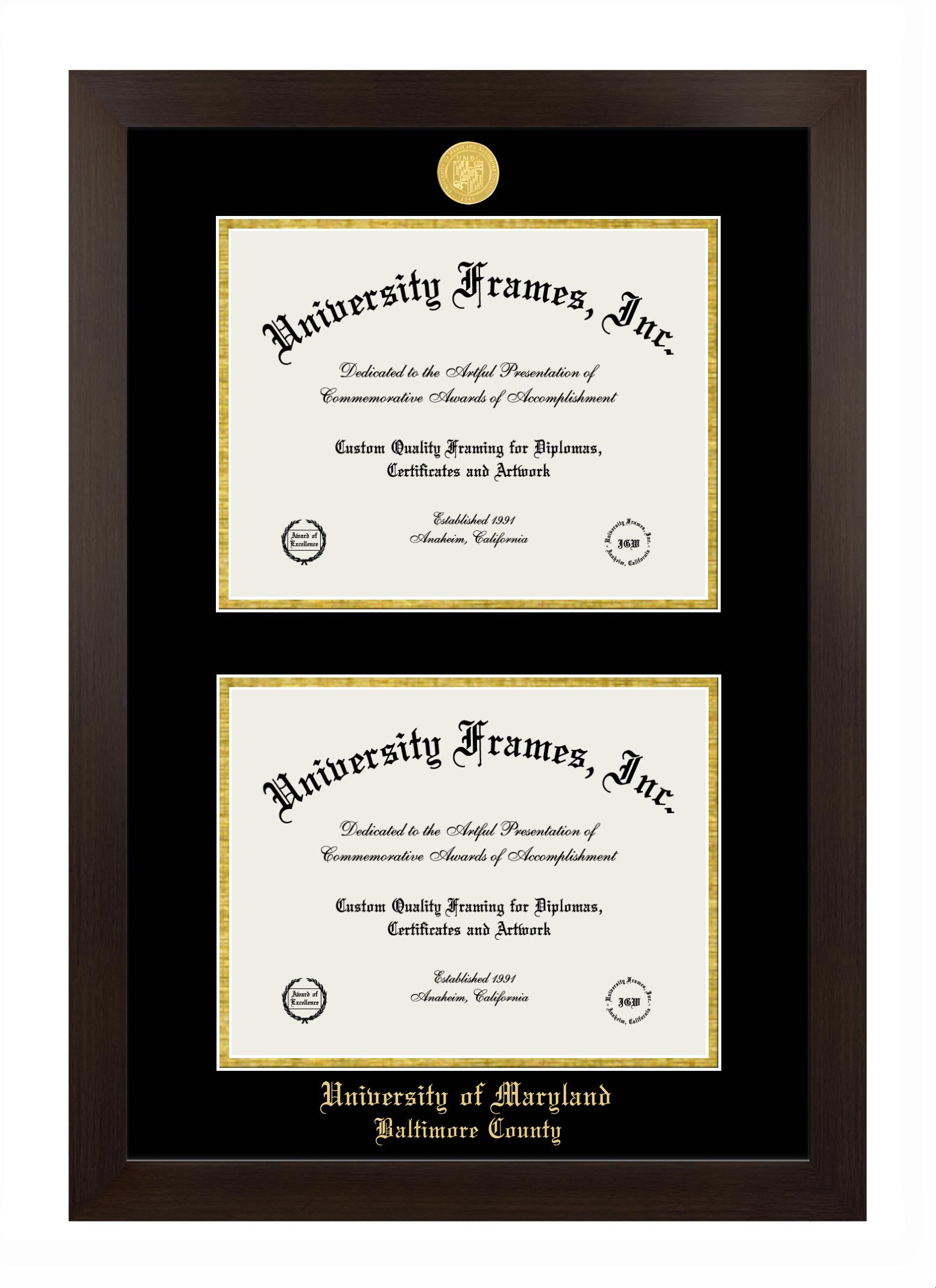 At University Frames. Our custom diploma frames for the University of Maryland Baltimore feature the official UMBC seal, making them a perfect fit for any UMBC graduate who wants to proudly display their well-deserved degree. Trust us to provide you with a frame that not only protects your diploma but also serves as a testament to your academic achievement in your office or home, we have the perfect solution.
