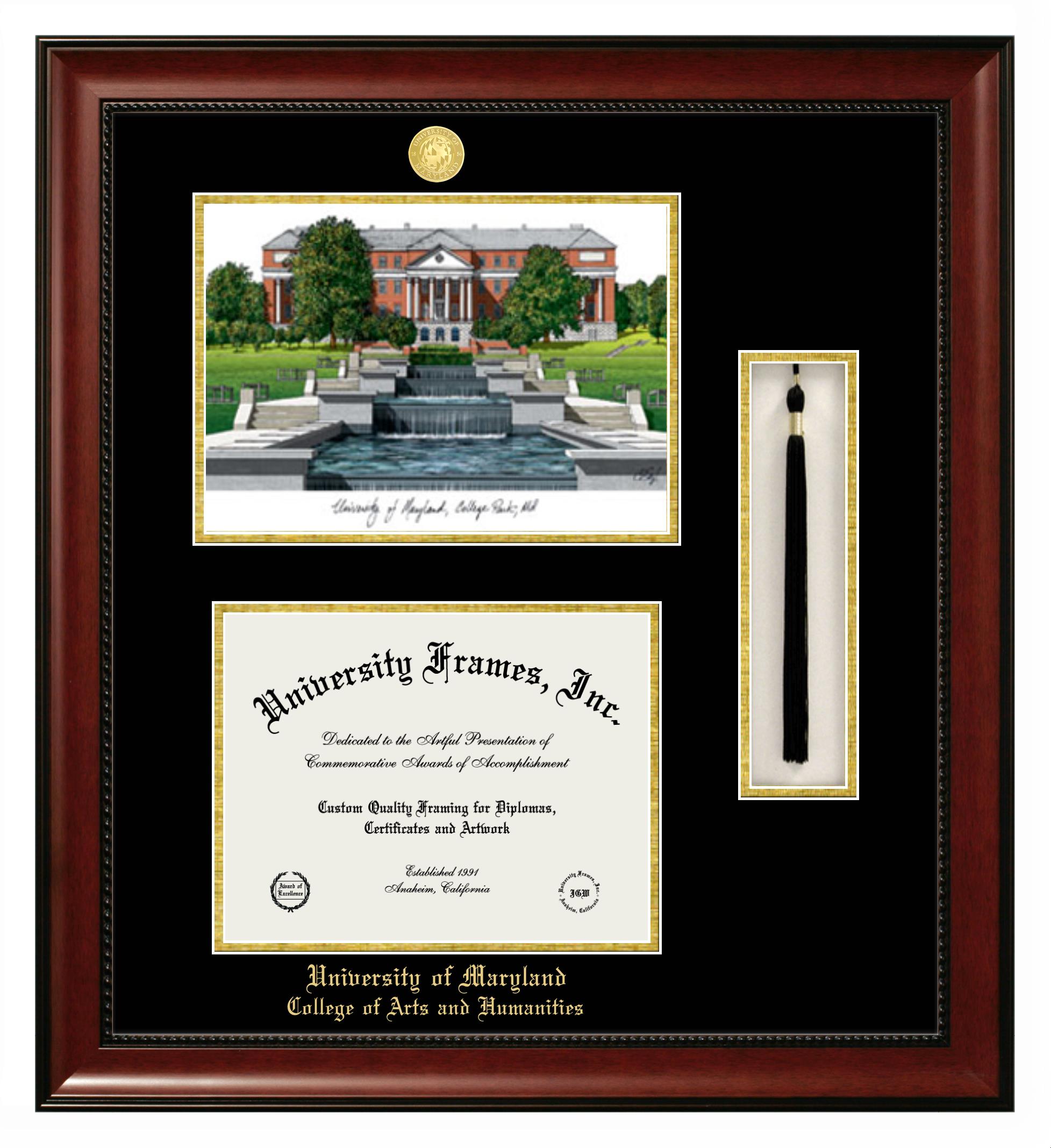 We believe that earning a degree is a huge accomplishment and showcasing it is important. Therefore, if you are looking for University of Maryland College of Arts and Humanities diploma or degree frames for yourself or a recent University of Maryland College of Arts and Humanities grad, we are sure you will love our custom diploma frames. Our diploma frames are made with the official University of Maryland College of Arts and Humanities seal and are beautifully crafted. Start designing your frame now!