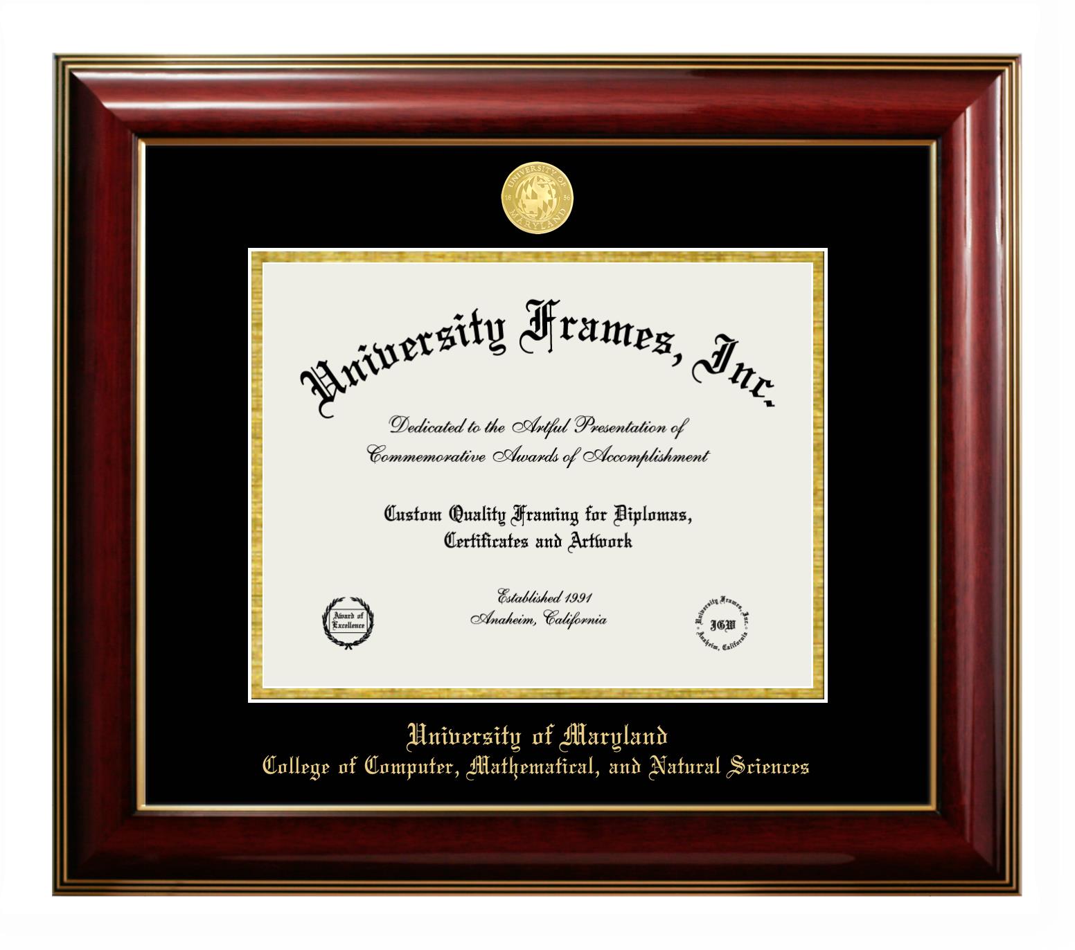 We believe that earning a degree is a huge accomplishment and showcasing it is important. Therefore, if you are looking for University of Maryland College of Computer, Mathematical, and Natural Sciences diploma or degree frames for yourself or a recent University of Maryland College of Computer, Mathematical, and Natural Sciences grad, we are sure you will love our custom diploma frames. Our diploma frames are made with the official University of Maryland College of Computer, Mathematical, and Natural Sciences seal and are beautifully crafted. Start designing your frame now!