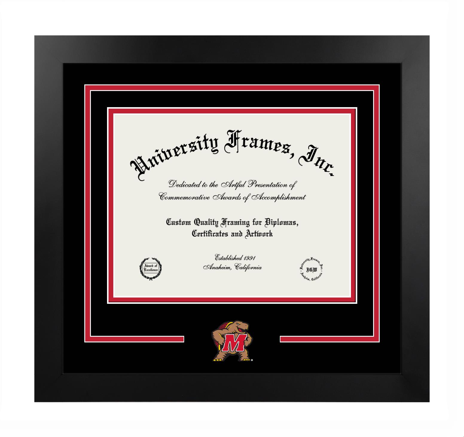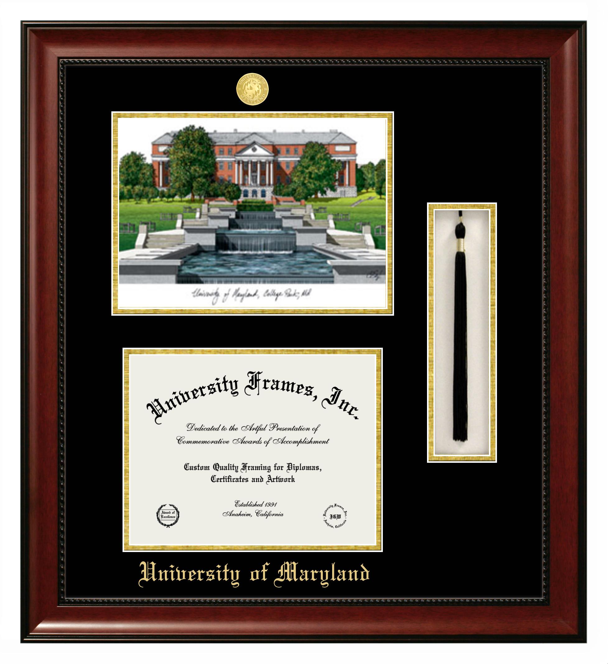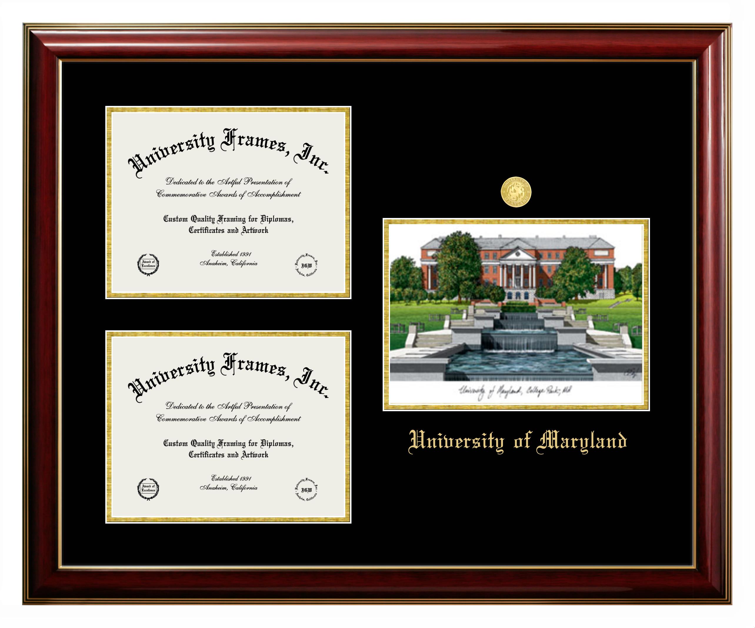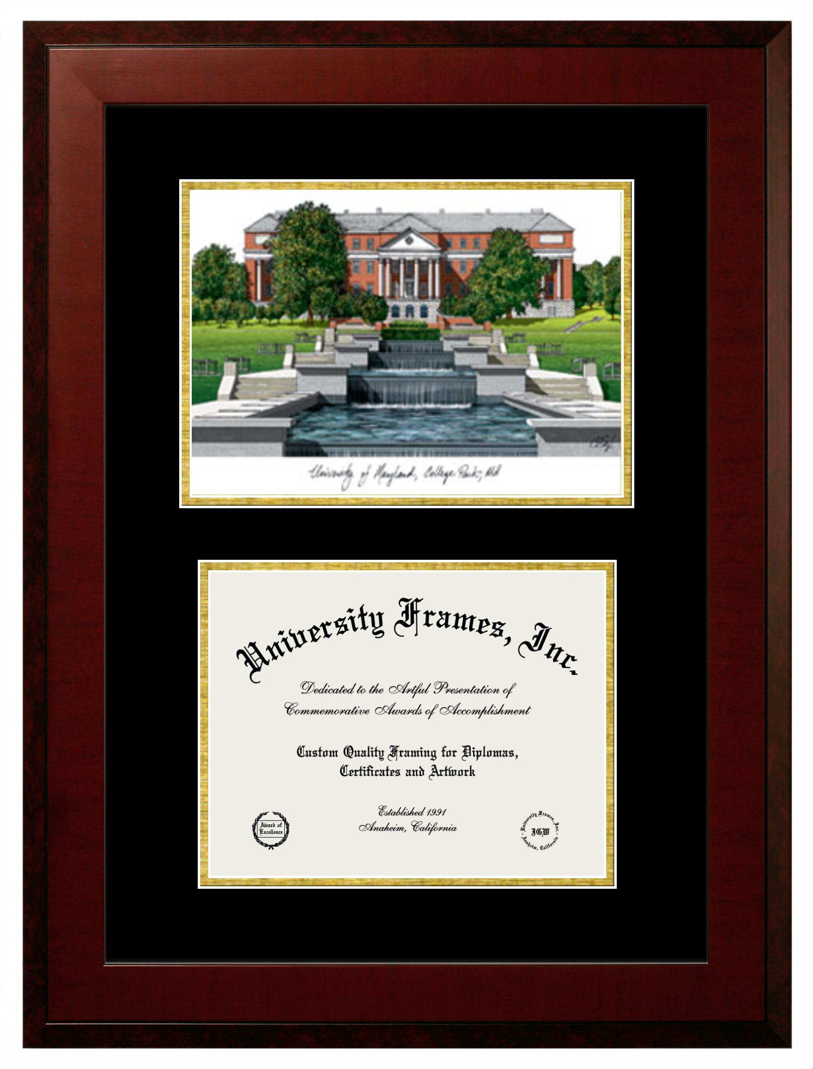 Whether you've earned a Bachelor's or Master's, getting a UMD Diploma is a good way to celebrate your success. Our carefully curated collection of customer favorites such as black and gold mats, classic mahogany with gold trims, logo matt frames, double-degree frames in black and gold mats, and frames with portrait openings, perfectly tributes your academic accomplishments and hard work.