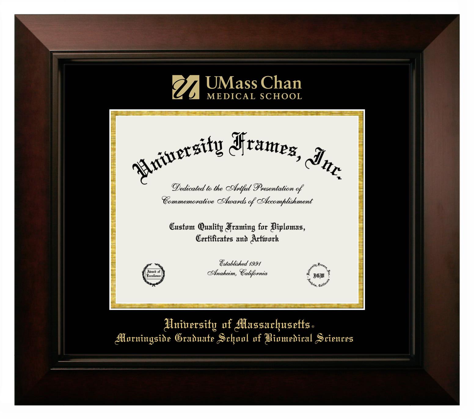 We believe that earning a degree is a huge accomplishment and showcasing it is important. Therefore, if you are looking for University of Massachusetts Morningside Graduate School of Biomedical Sciences diploma or degree frames for yourself or a recent University of Massachusetts Morningside Graduate School of Biomedical Sciences grad, we are sure you will love our custom diploma frames. Our diploma frames are made with the official University of Massachusetts Morningside Graduate School of Biomedical Sciences seal and are beautifully crafted. Start designing your frame now!