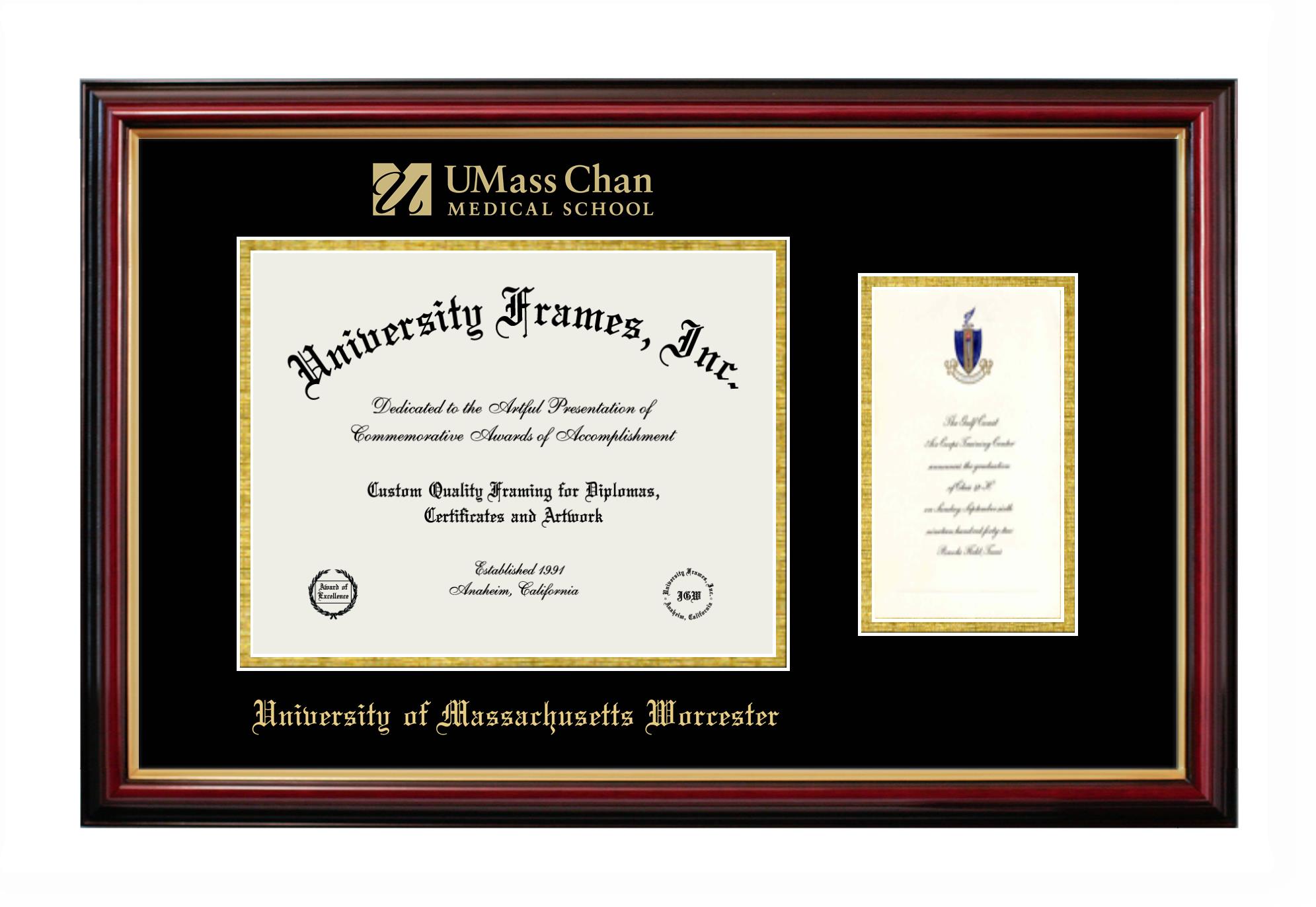 We believe that earning a degree is a huge accomplishment and showcasing it is important. Therefore, if you are looking for University of Massachusetts Worcester diploma or degree frames for yourself or a recent University of Massachusetts Worcester grad, we are sure you will love our custom diploma frames. Our diploma frames are made with the official University of Massachusetts Worcester seal and are beautifully crafted. Start designing your frame now!