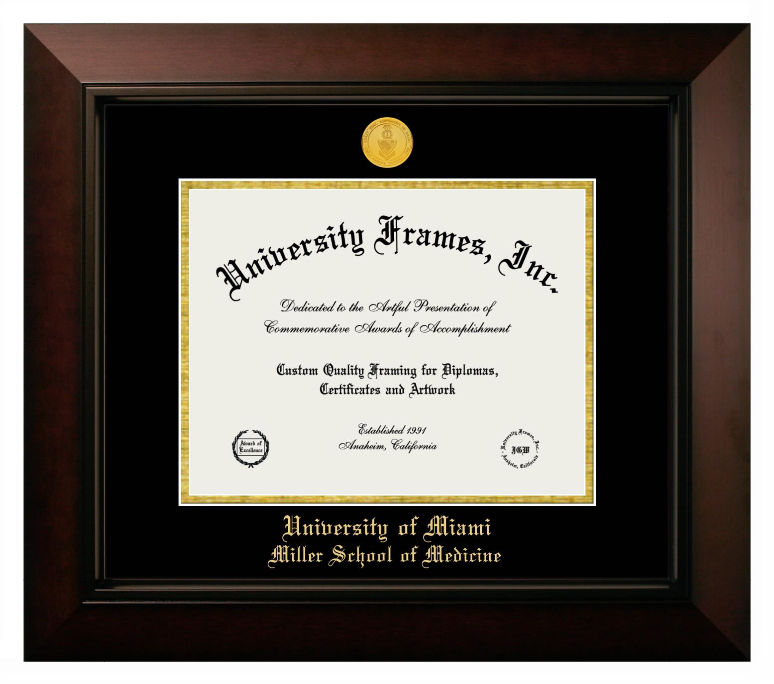 We believe that earning a degree is a huge accomplishment and showcasing it is important. Therefore, if you are looking for University of Miami Miller School of Medicine diploma or degree frames for yourself or a recent University of Miami Miller School of Medicine grad, we are sure you will love our custom diploma frames. Our diploma frames are made with the official University of Miami Miller School of Medicine seal and are beautifully crafted. Start designing your frame now!