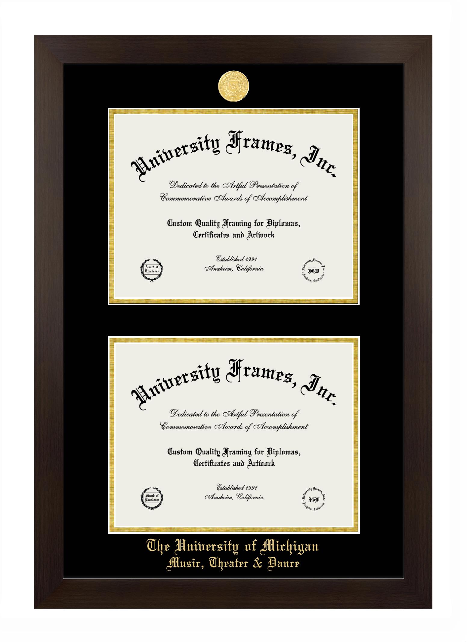We believe that earning a degree is a huge accomplishment and showcasing it is important. Therefore, if you are looking for University of Michigan Music, Theater & Dance diploma or degree frames for yourself or a recent University of Michigan Music, Theater & Dance grad, we are sure you will love our custom diploma frames. Our diploma frames are made with the official University of Michigan Music, Theater & Dance seal and are beautifully crafted. Start designing your frame now!