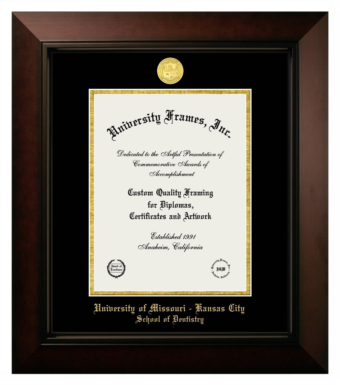 We believe that earning a degree is a huge accomplishment and showcasing it is important. Therefore, if you are looking for University of Missouri - Kansas City School of Dentistry diploma or degree frames for yourself or a recent University of Missouri - Kansas City School of Dentistry grad, we are sure you will love our custom diploma frames. Our diploma frames are made with the official University of Missouri - Kansas City School of Dentistry seal and are beautifully crafted. Start designing your frame now!