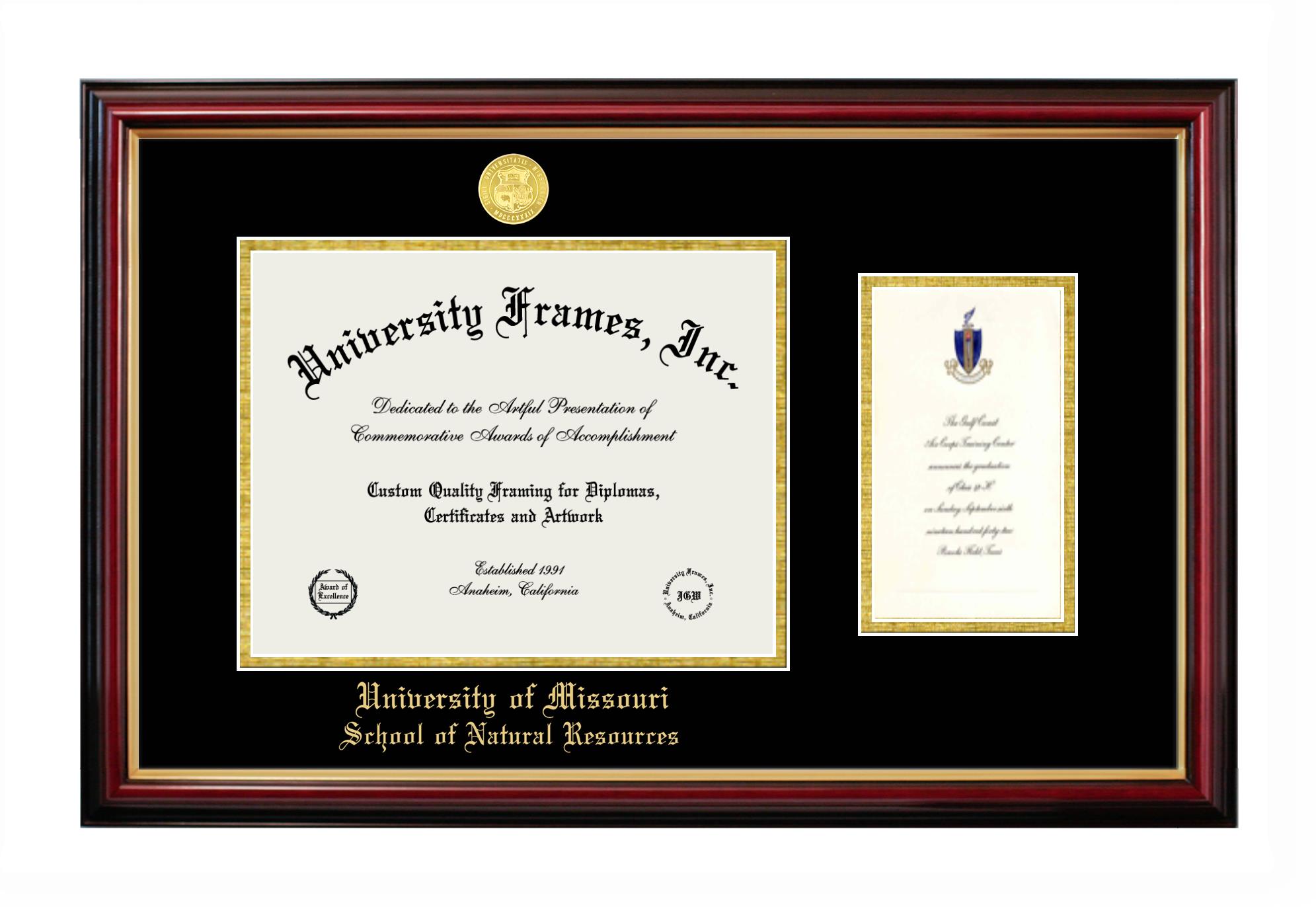 We believe that earning a degree is a huge accomplishment and showcasing it is important. Therefore, if you are looking for University of Missouri School of Natural Resources diploma or degree frames for yourself or a recent University of Missouri School of Natural Resources grad, we are sure you will love our custom diploma frames. Our diploma frames are made with the official University of Missouri School of Natural Resources seal and are beautifully crafted. Start designing your frame now!