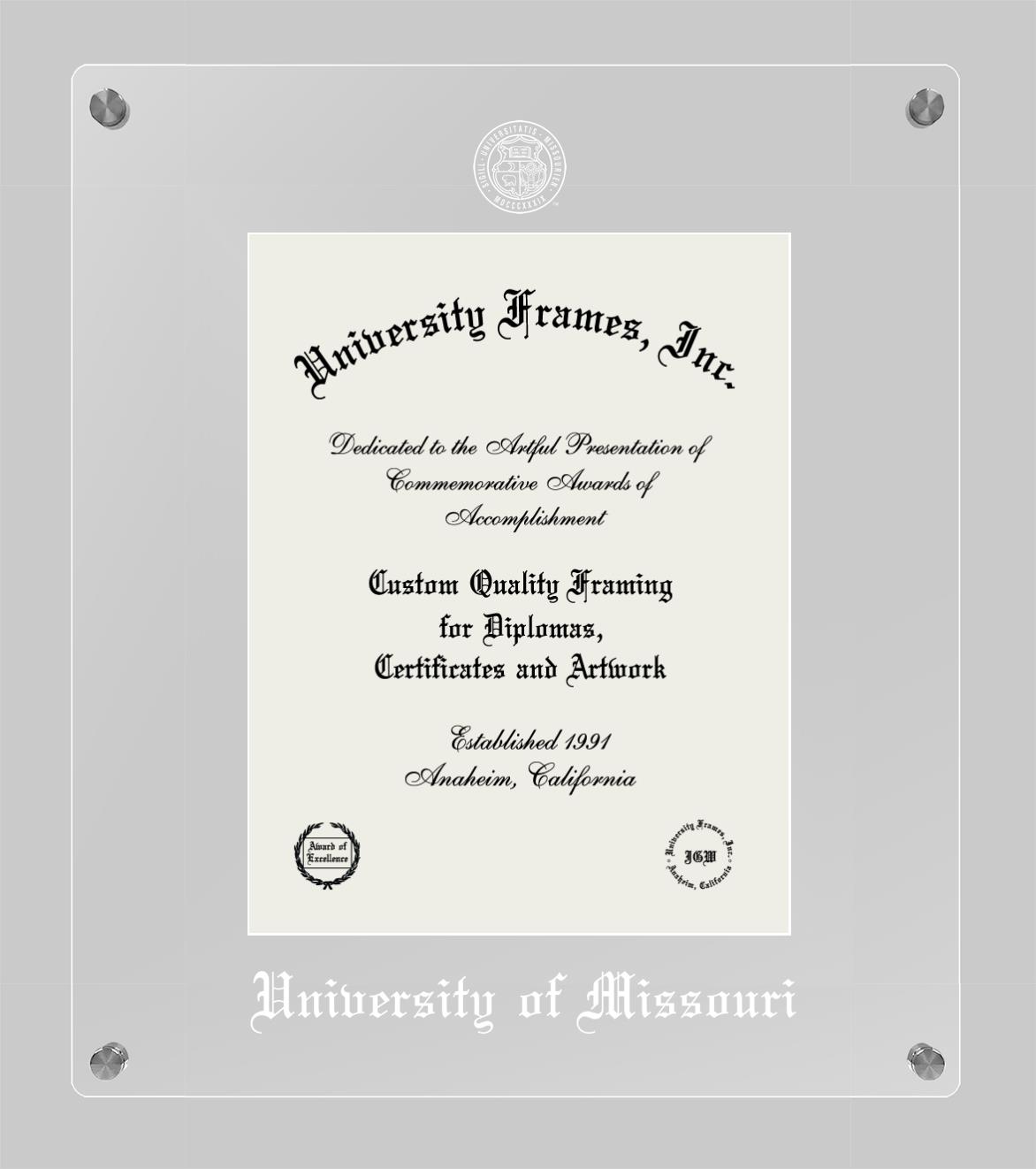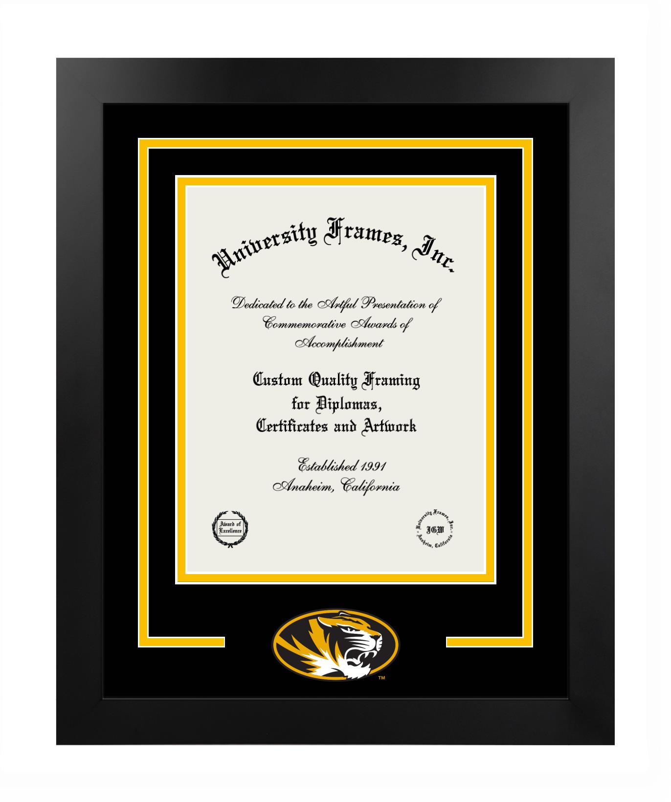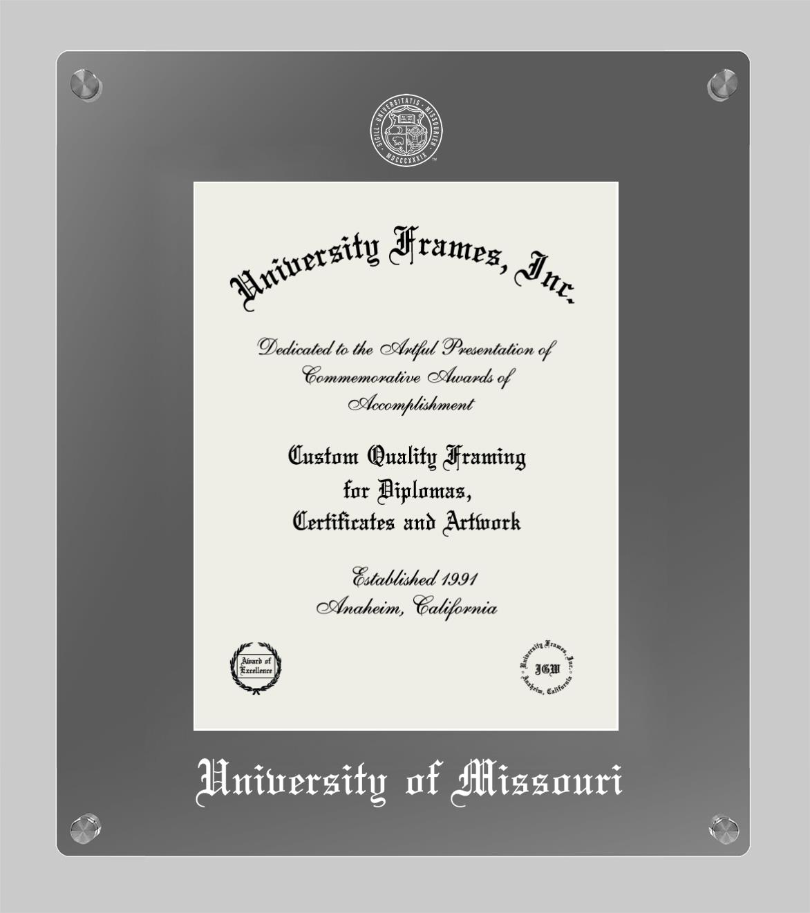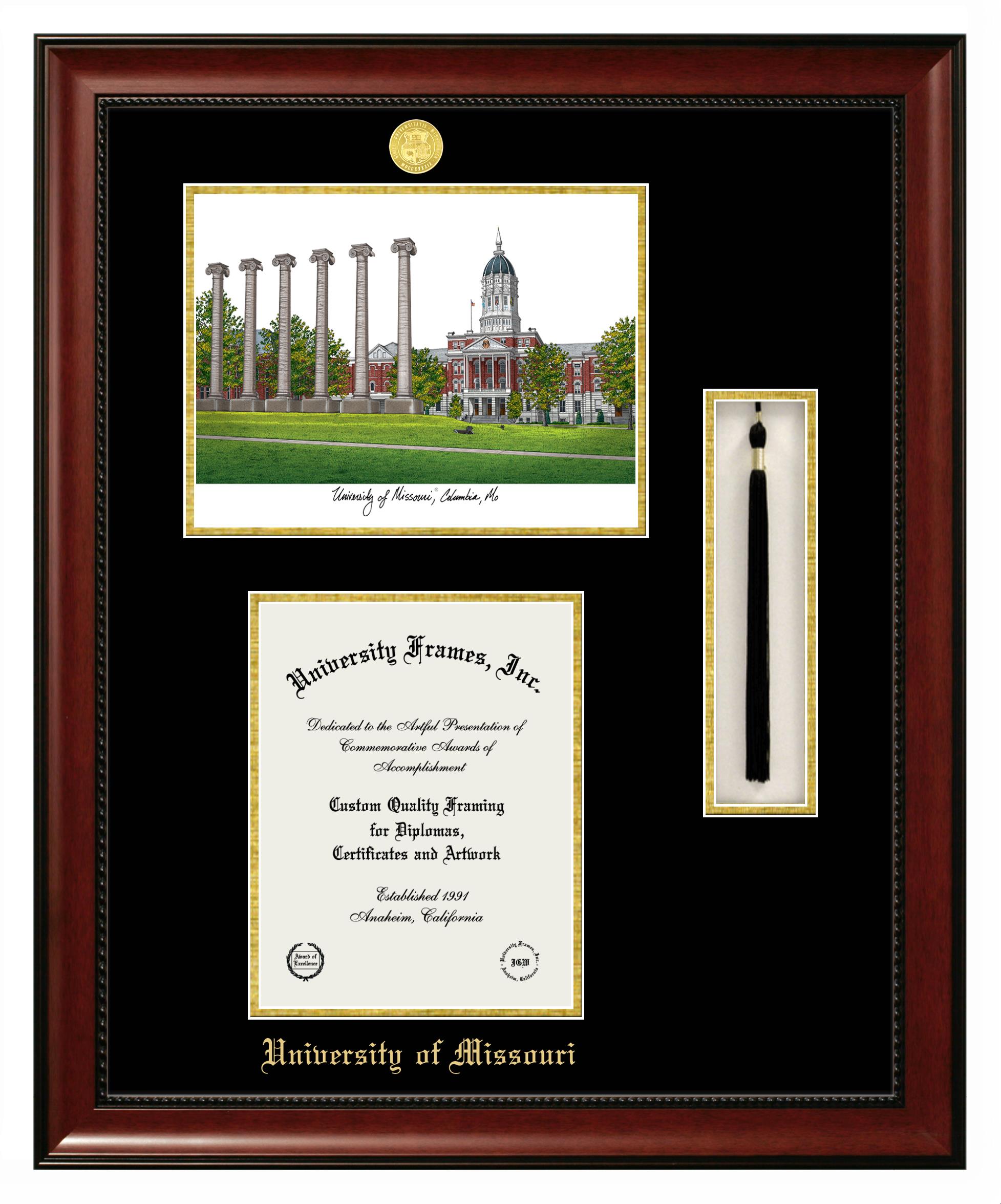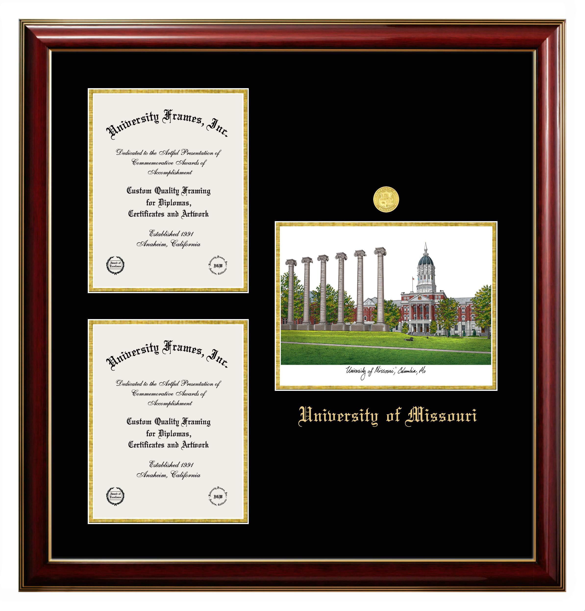 We believe that earning a degree is a huge accomplishment and showcasing it is important. Therefore, if you are looking for University of Missouri diploma or degree frames for yourself or a recent University of Missouri grad, we are sure you will love our custom diploma frames. Our diploma frames are made with the official University of Missouri seal and are beautifully crafted. Start designing your frame now!