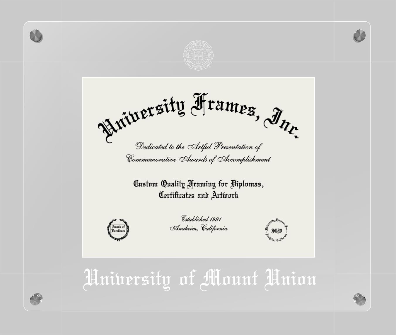 We believe that earning a degree is a huge accomplishment and showcasing it is important. Therefore, if you are looking for University of Mount Union diploma or degree frames for yourself or a recent University of Mount Union grad, we are sure you will love our custom diploma frames. Our diploma frames are made with the official University of Mount Union seal and are beautifully crafted. Start designing your frame now!