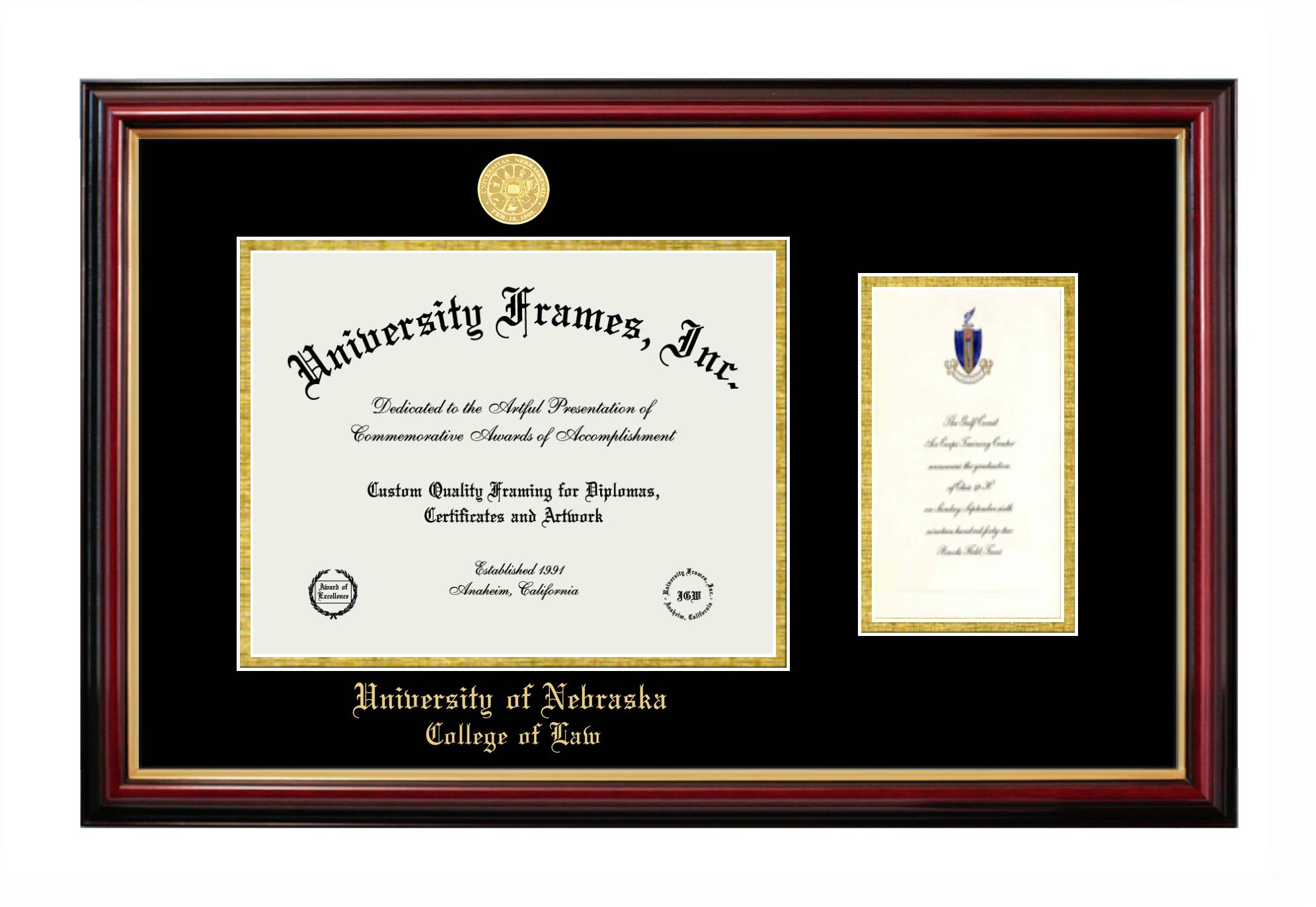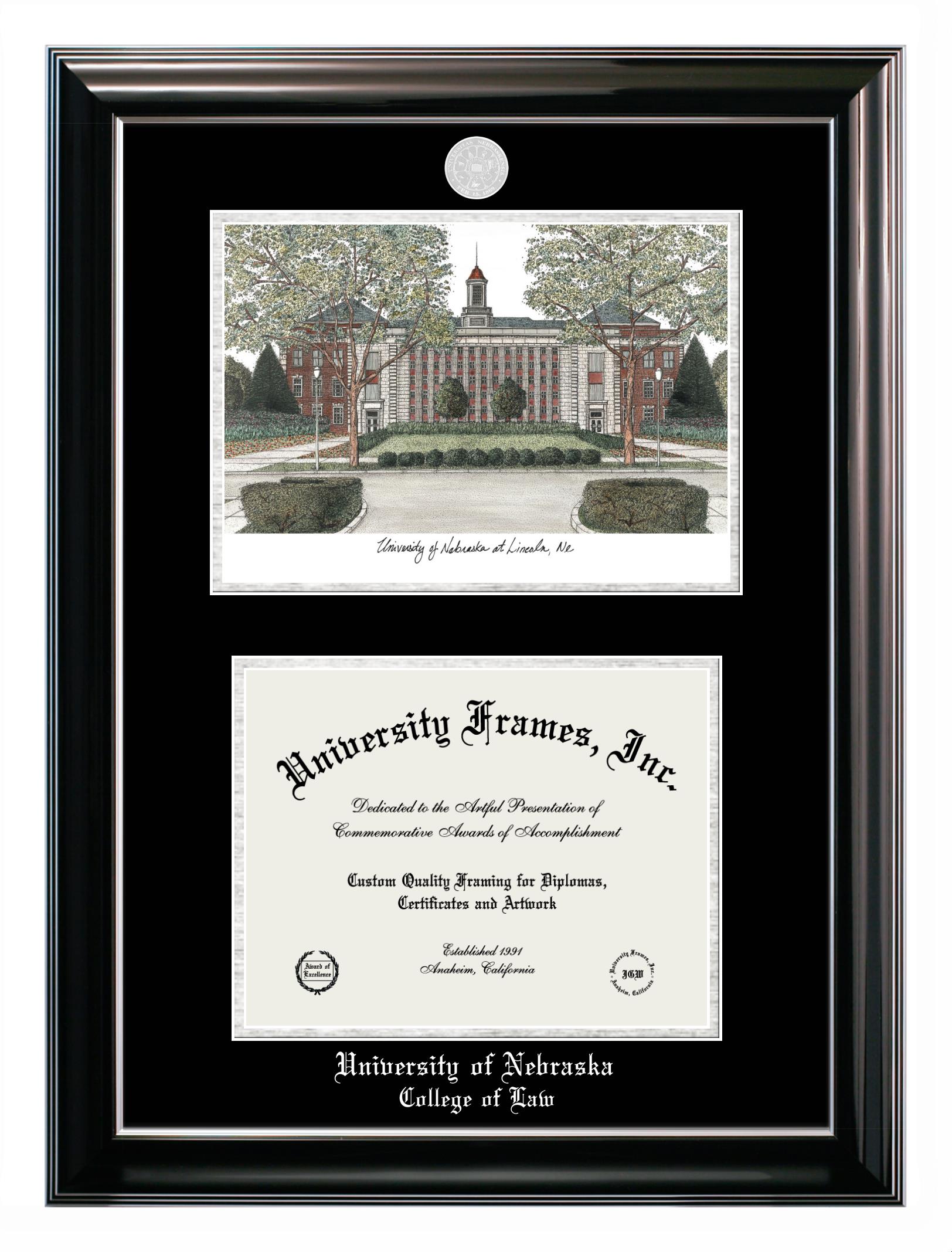 We believe that earning a degree is a huge accomplishment and showcasing it is important. Therefore, if you are looking for University of Nebraska College of Law diploma or degree frames for yourself or a recent University of Nebraska College of Law grad, we are sure you will love our custom diploma frames. Our diploma frames are made with the official University of Nebraska College of Law seal and are beautifully crafted. Start designing your frame now!