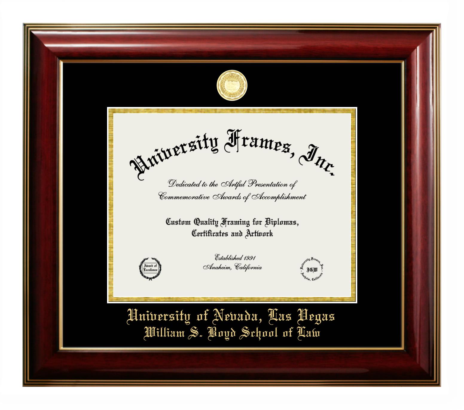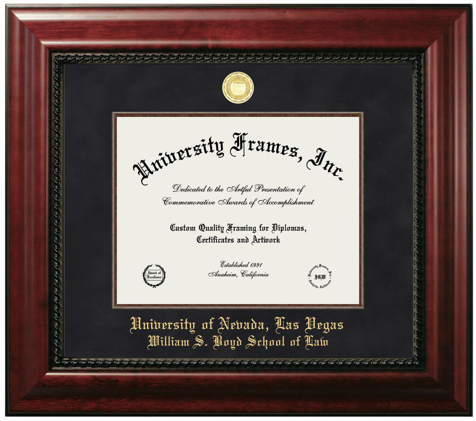 We believe that earning a degree is a huge accomplishment and showcasing it is important. Therefore, if you are looking for University of Nevada Las Vegas William S. Boyd School of Law diploma or degree frames for yourself or a recent University of Nevada Las Vegas William S. Boyd School of Law grad, we are sure you will love our custom diploma frames. Our diploma frames are made with the official University of Nevada Las Vegas William S. Boyd School of Law seal and are beautifully crafted. Start designing your frame now!