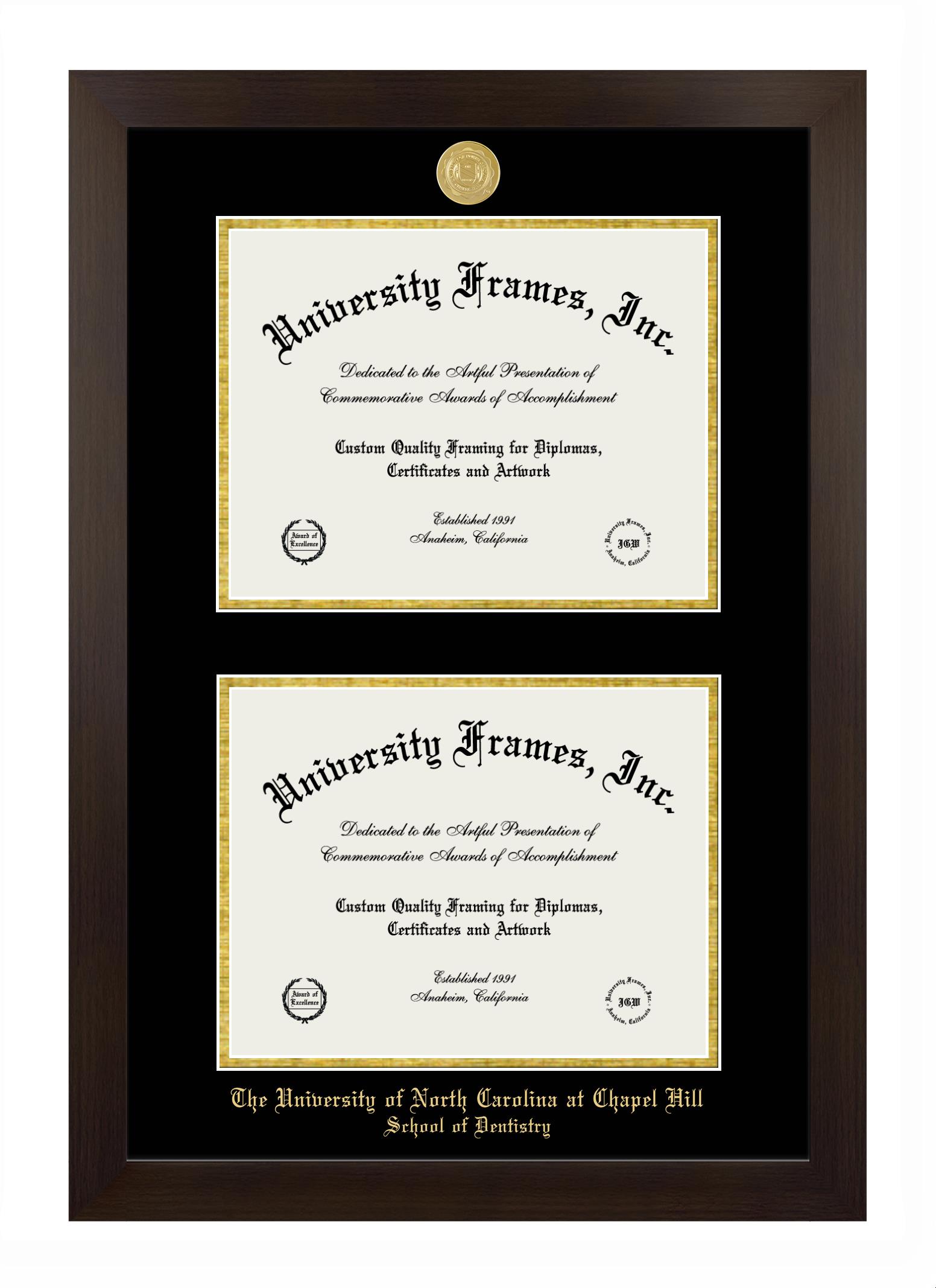 We believe that earning a degree is a huge accomplishment and showcasing it is important. Therefore, if you are looking for University of North Carolina at Chapel Hill School of Dentistry diploma or degree frames for yourself or a recent University of North Carolina at Chapel Hill School of Dentistry grad, we are sure you will love our custom diploma frames. Our diploma frames are made with the official University of North Carolina at Chapel Hill School of Dentistry seal and are beautifully crafted. Start designing your frame now!
