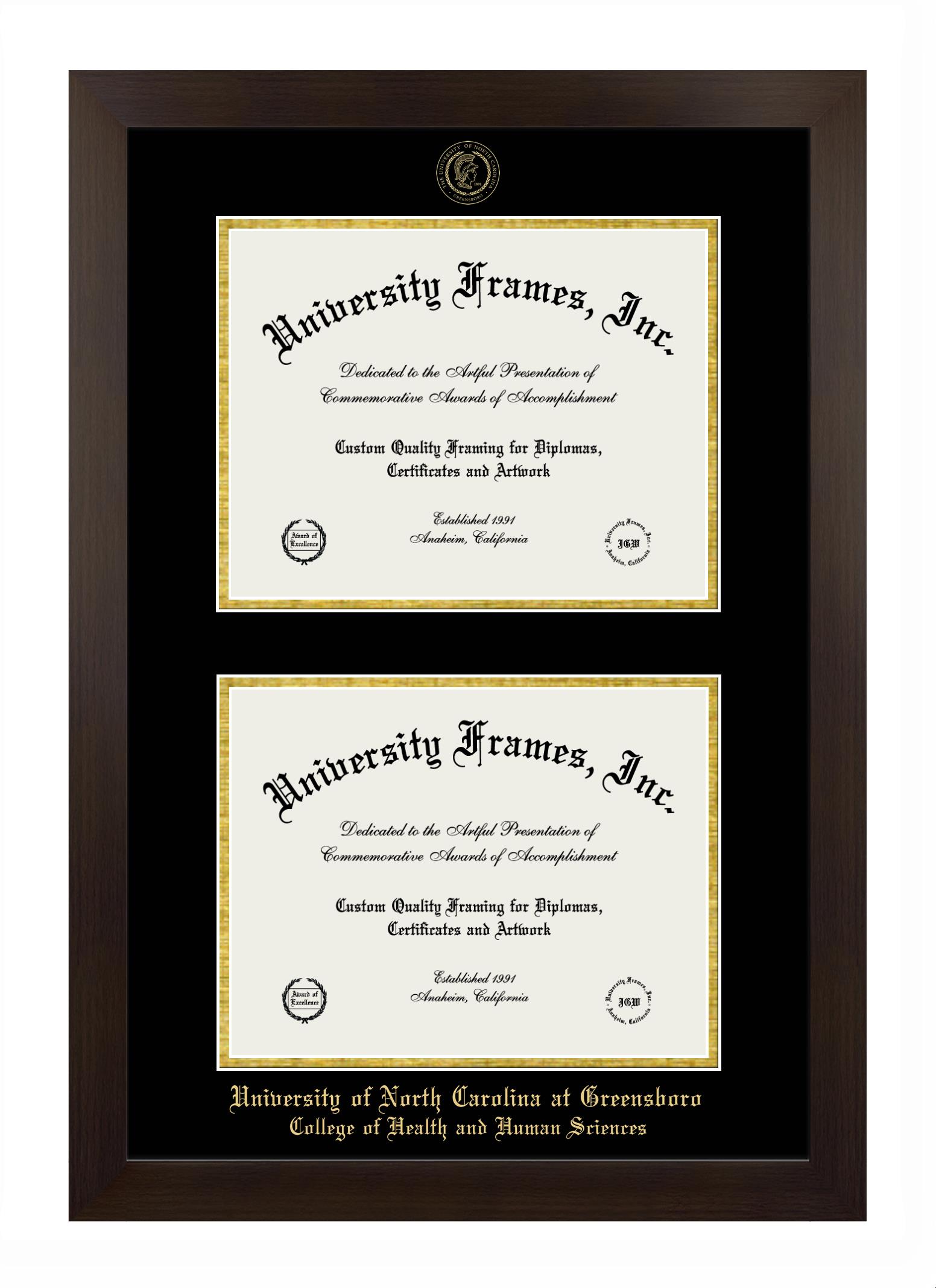 We believe that earning a degree is a huge accomplishment and showcasing it is important. Therefore, if you are looking for University of North Carolina at Greensboro College of Health and Human Sciences diploma or degree frames for yourself or a recent University of North Carolina at Greensboro College of Health and Human Sciences grad, we are sure you will love our custom diploma frames. Our diploma frames are made with the official University of North Carolina at Greensboro College of Health and Human Sciences seal and are beautifully crafted. Start designing your frame now!