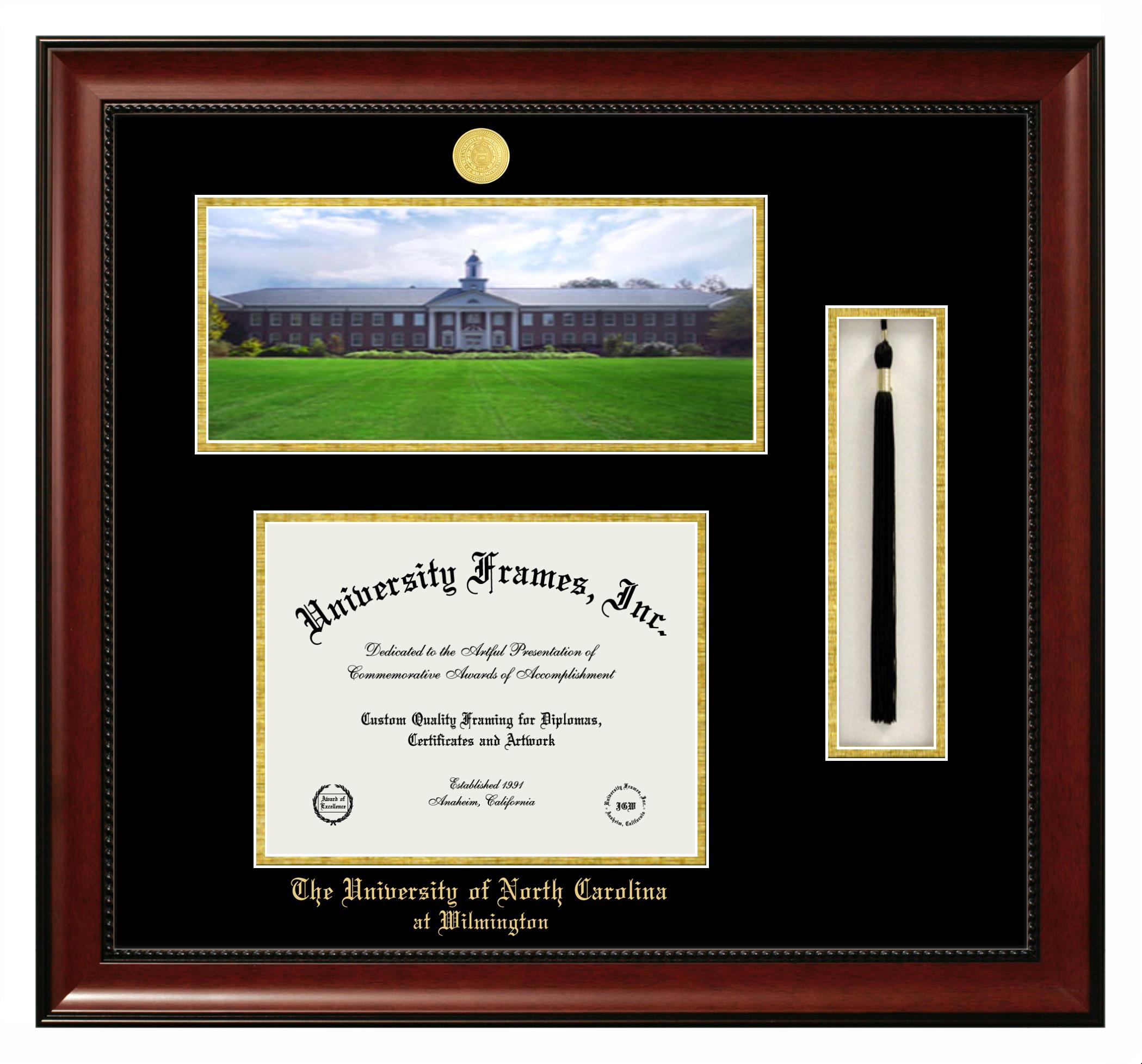 We believe that earning a degree is a huge accomplishment and showcasing it is important. Therefore, if you are looking for University of North Carolina at Wilmington diploma or degree frames for yourself or a recent University of North Carolina at Wilmington grad, we are sure you will love our custom diploma frames. Our diploma frames are made with the official University of North Carolina at Wilmington seal and are beautifully crafted. Start designing your frame now!