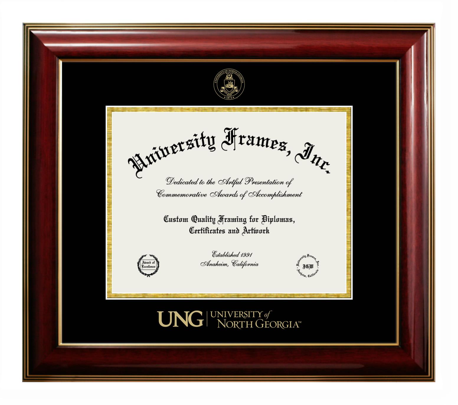 We believe that earning a degree is a huge accomplishment and showcasing it is important. Therefore, if you are looking for University of North Georgia diploma or degree frames for yourself or a recent University of North Georgia grad, we are sure you will love our custom diploma frames. Our diploma frames are made with the official University of North Georgia seal and are beautifully crafted. Start designing your frame now!