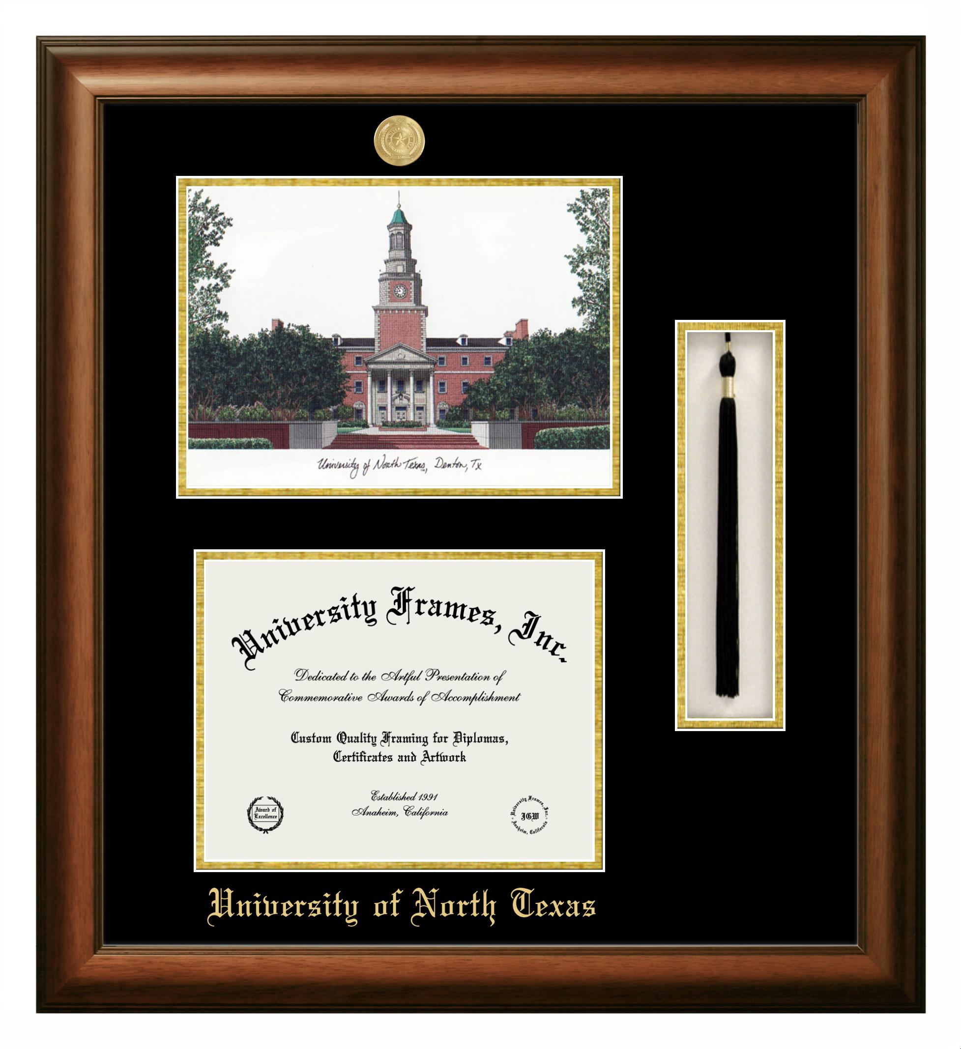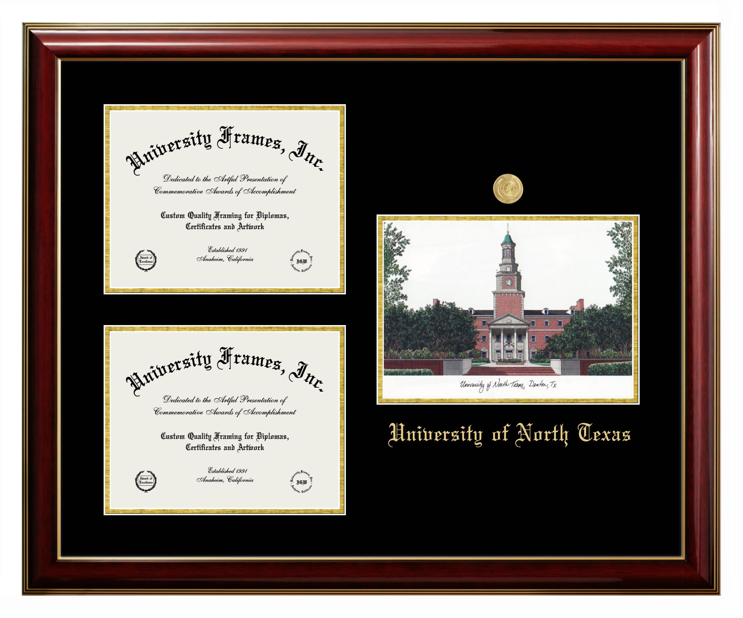 We believe that earning a degree is a huge accomplishment and showcasing it is important. Therefore, if you are looking for University of North Texas diploma or degree frames for yourself or a recent University of North Texas grad, we are sure you will love our custom diploma frames. Our diploma frames are made with the official University of North Texas seal and are beautifully crafted. Start designing your frame now!