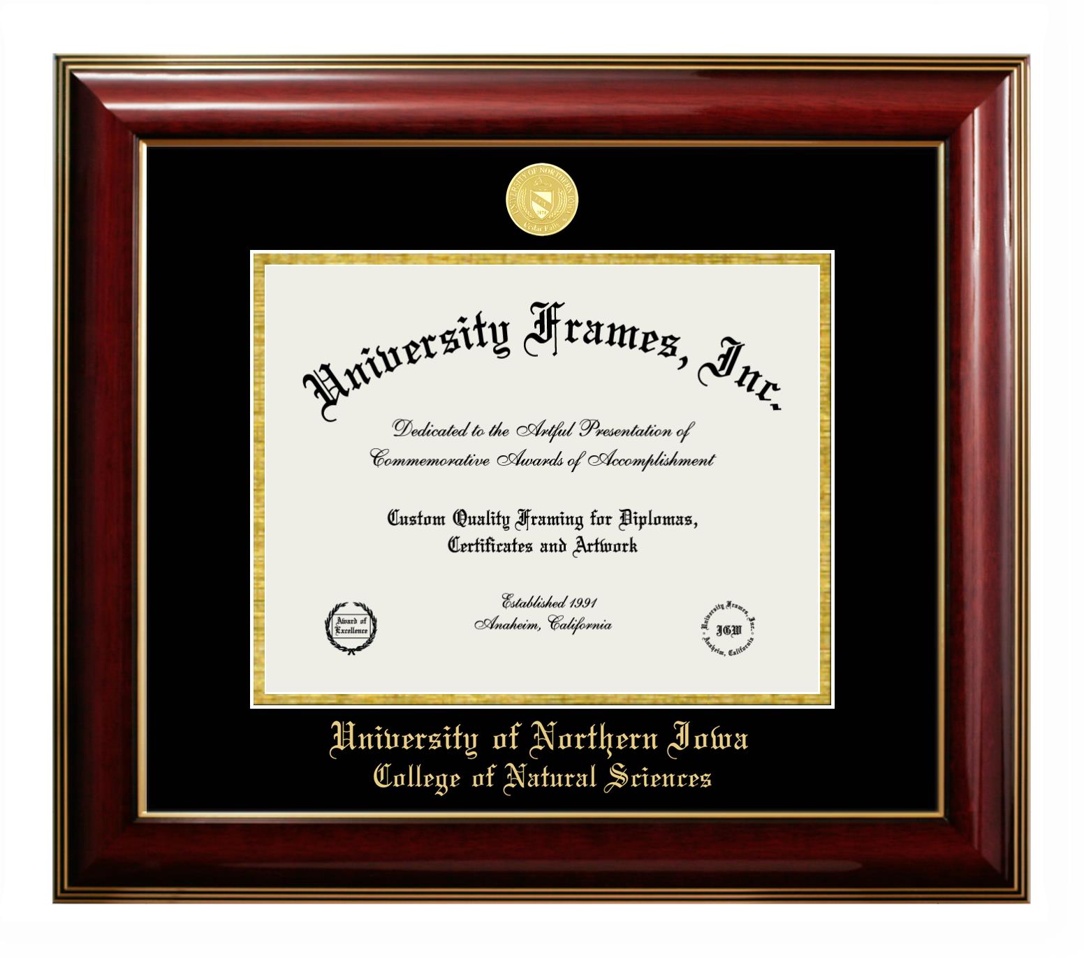 We believe that earning a degree is a huge accomplishment and showcasing it is important. Therefore, if you are looking for University of Northern Iowa College of Natural Sciences diploma or degree frames for yourself or a recent University of Northern Iowa College of Natural Sciences grad, we are sure you will love our custom diploma frames. Our diploma frames are made with the official University of Northern Iowa College of Natural Sciences seal and are beautifully crafted. Start designing your frame now!