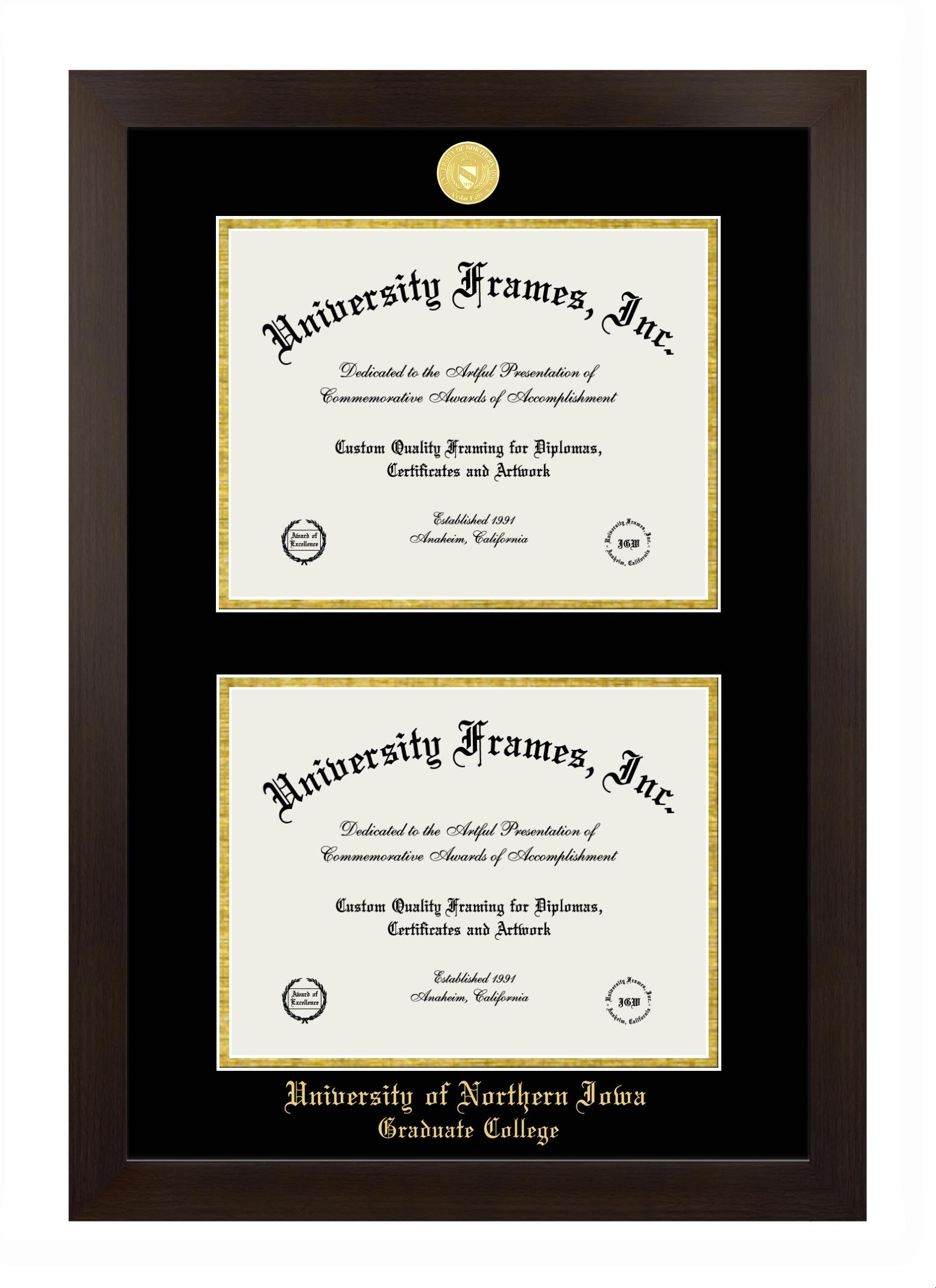 We believe that earning a degree is a huge accomplishment and showcasing it is important. Therefore, if you are looking for University of Northern Iowa Graduate College diploma or degree frames for yourself or a recent University of Northern Iowa Graduate College grad, we are sure you will love our custom diploma frames. Our diploma frames are made with the official University of Northern Iowa Graduate College seal and are beautifully crafted. Start designing your frame now!