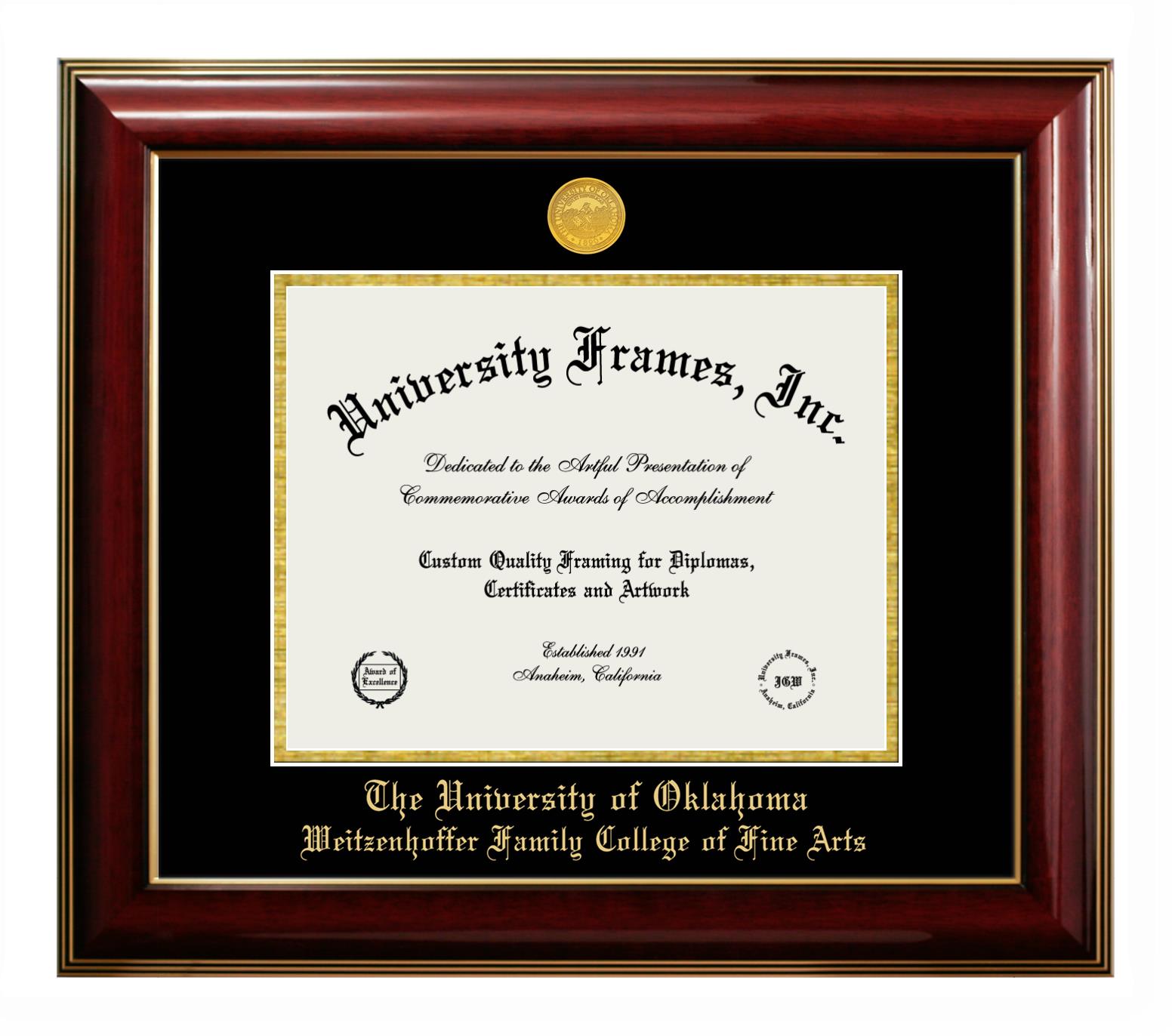 We believe that earning a degree is a huge accomplishment and showcasing it is important. Therefore, if you are looking for University of Oklahoma Weitzenhoffer Family College of Fine Arts diploma or degree frames for yourself or a recent University of Oklahoma Weitzenhoffer Family College of Fine Arts grad, we are sure you will love our custom diploma frames. Our diploma frames are made with the official University of Oklahoma Weitzenhoffer Family College of Fine Arts seal and are beautifully crafted. Start designing your frame now!