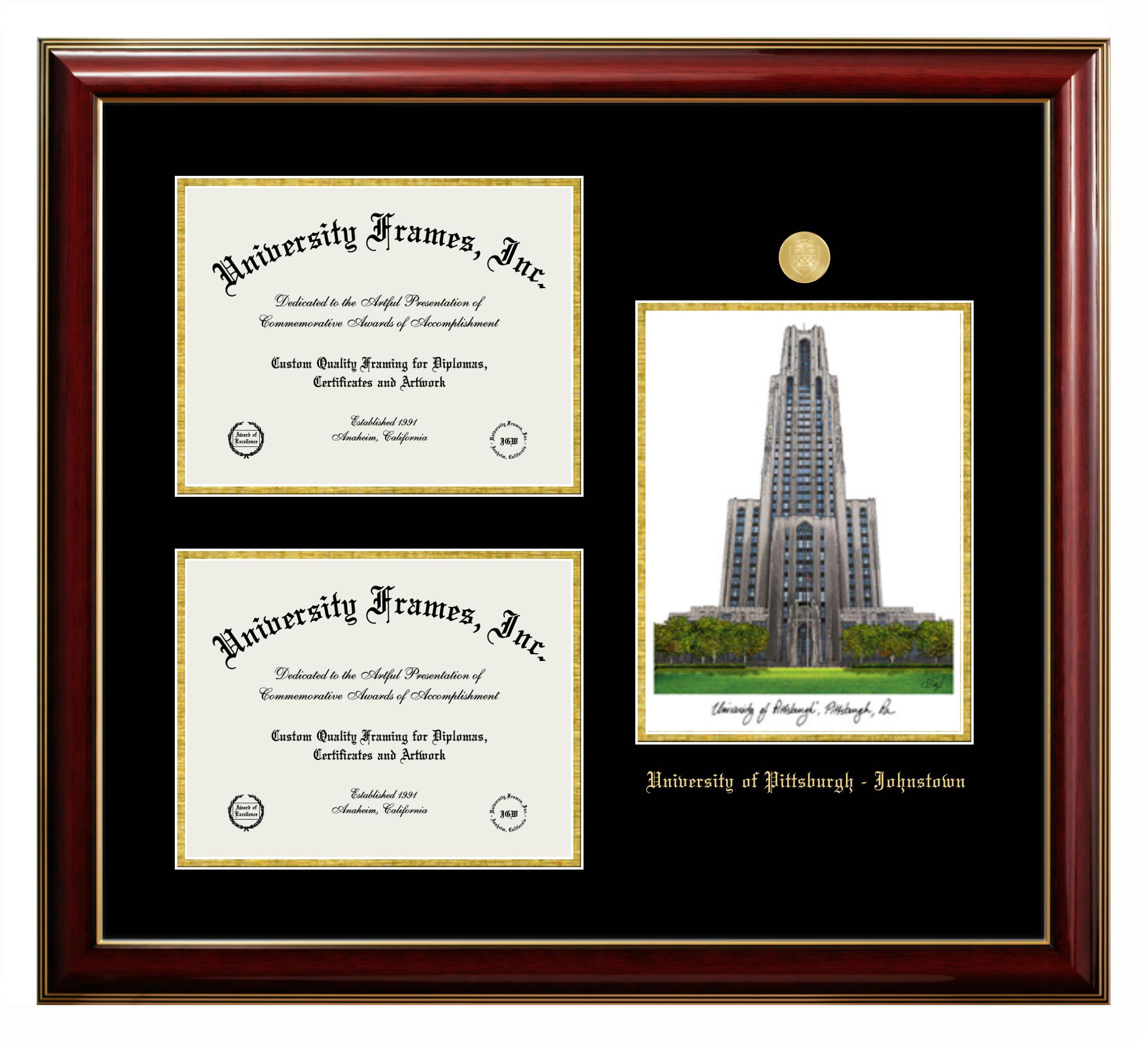 We believe that earning a degree is a huge accomplishment and showcasing it is important. Therefore, if you are looking for University of Pittsburgh - Johnstown diploma or degree frames for yourself or a recent University of Pittsburgh - Johnstown grad, we are sure you will love our custom diploma frames. Our diploma frames are made with the official University of Pittsburgh - Johnstown seal and are beautifully crafted. Start designing your frame now!
