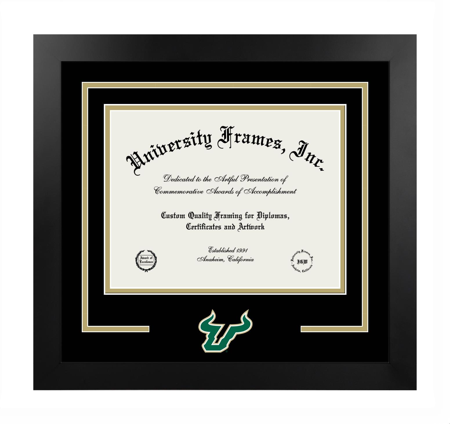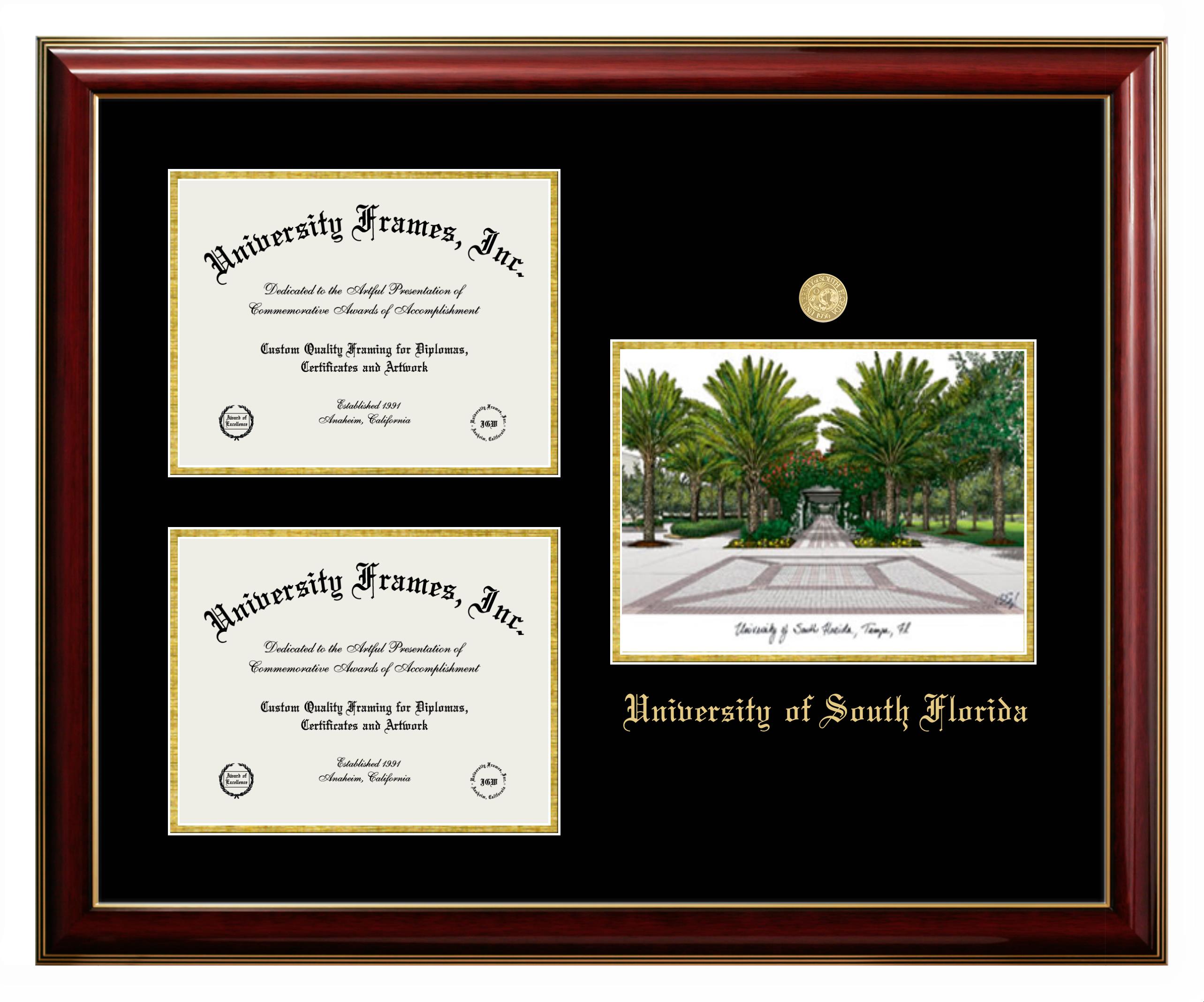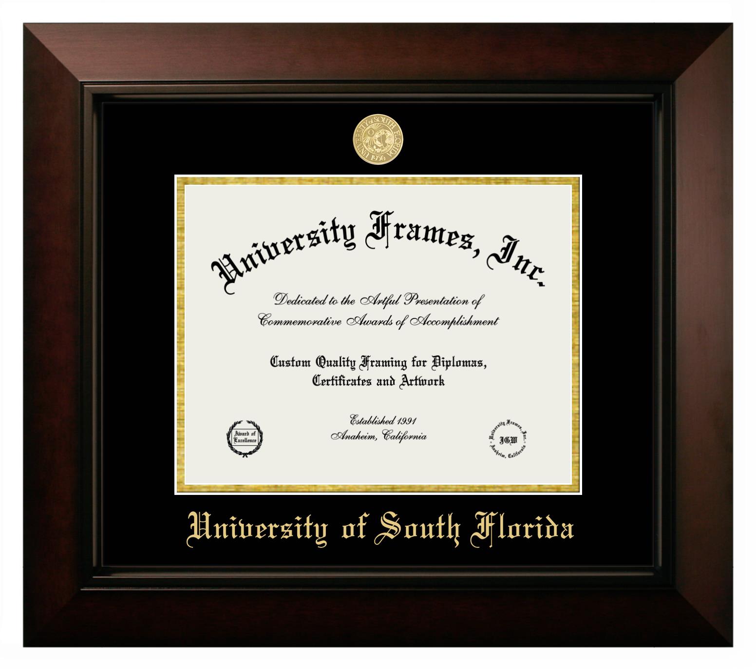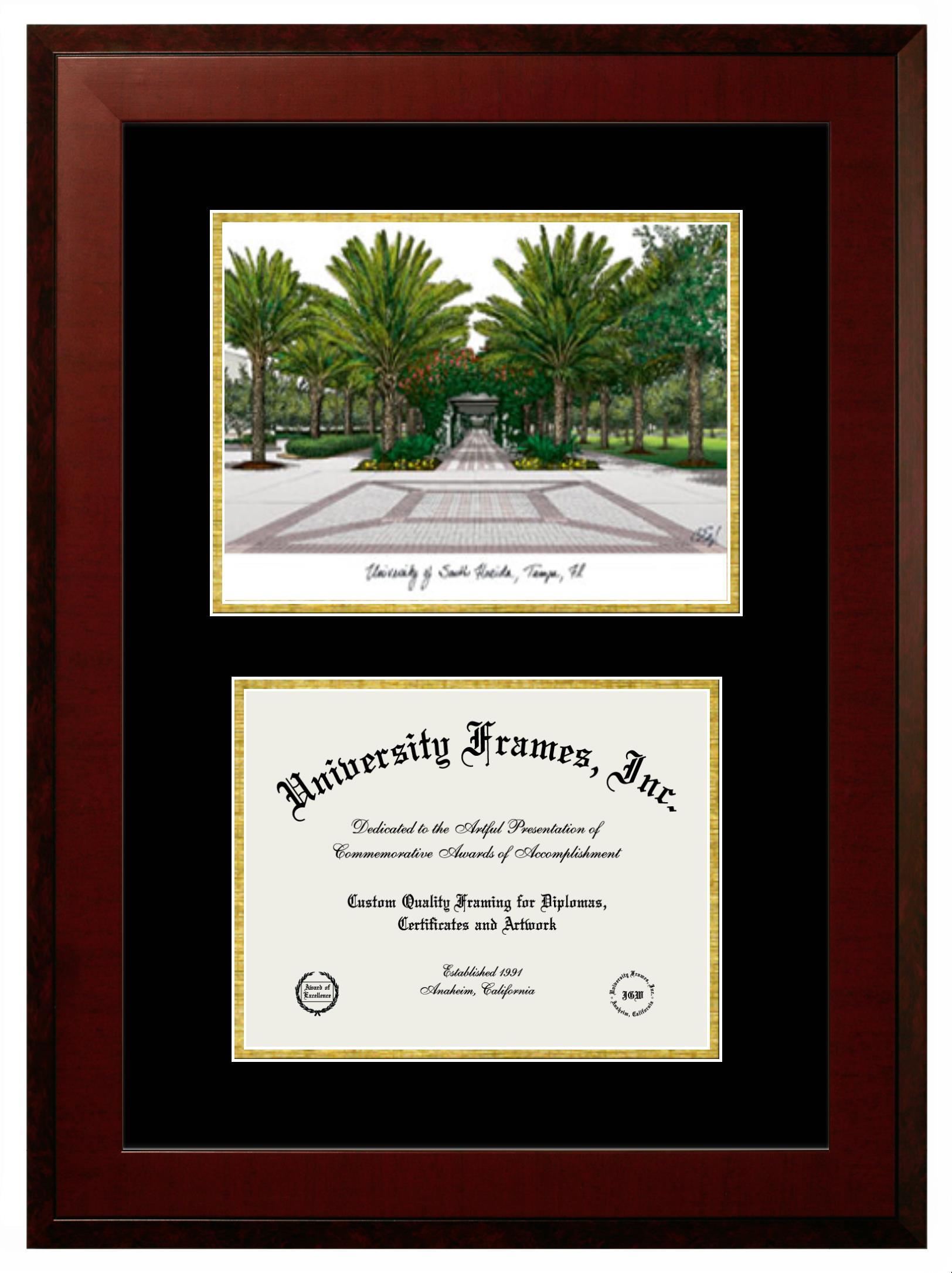 We believe that earning a degree is a huge accomplishment and showcasing it is important. Therefore, if you are looking for University of South Florida diploma or degree frames for yourself or a recent University of South Florida grad, we are sure you will love our custom diploma frames. Our diploma frames are made with the official University of South Florida seal and are beautifully crafted. Start designing your frame now!