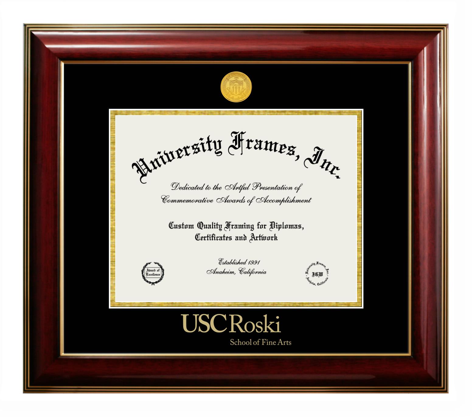 We believe that earning a degree is a huge accomplishment and showcasing it is important. Therefore, if you are looking for University of Southern California Roski School of Fine Arts diploma or degree frames for yourself or a recent University of Southern California Roski School of Fine Arts grad, we are sure you will love our custom diploma frames. Our diploma frames are made with the official University of Southern California Roski School of Fine Arts seal and are beautifully crafted. Start designing your frame now!