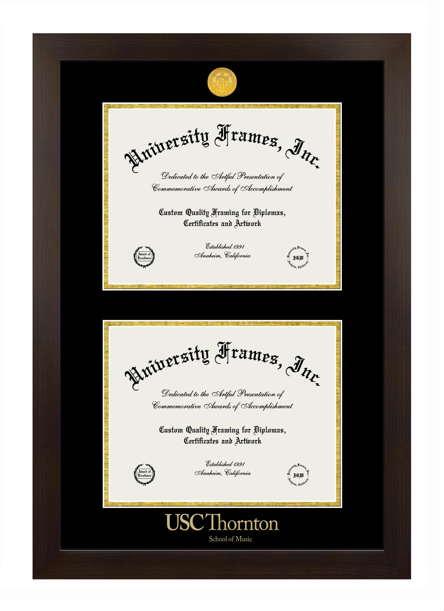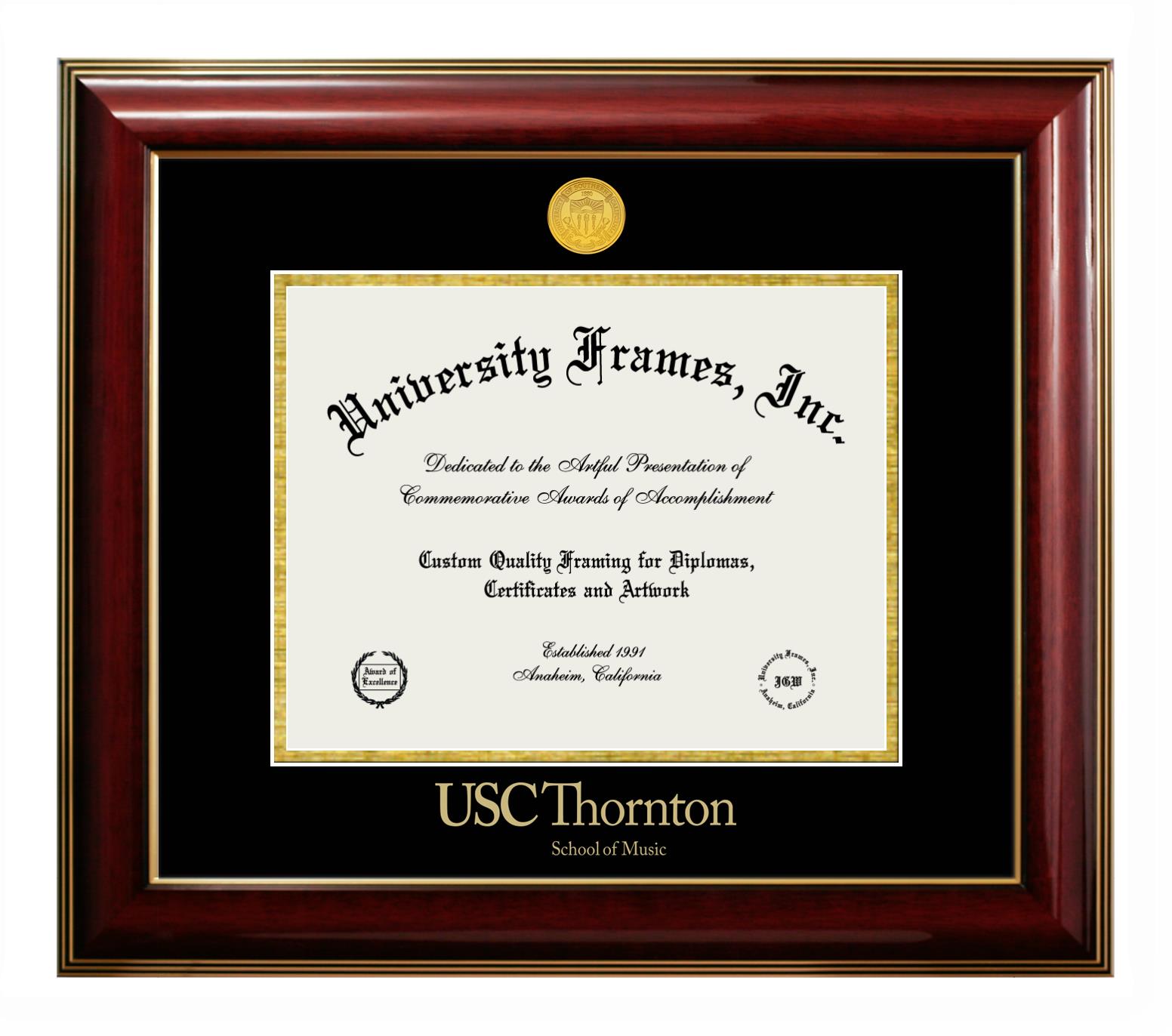 University of Southern California Thornton School of Music diploma frames and degree frames are the perfect graduation gifts for recent grads, or anyone who wants to preserve and display their hard-earned accomplishments. Our custom diploma frames are specifically made with the official University of Southern California Thornton School of Music seal and are handcrafted to meet high-quality standards. We guarantee that you will love our graduation frames. Start customizing your frame now!