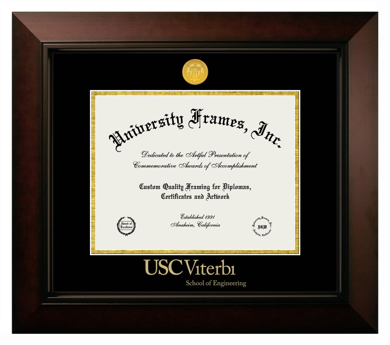 University of Southern California Viterbi School of Engineering diploma frames and degree frames are the perfect graduation gifts for recent grads, or anyone who wants to preserve and display their hard-earned accomplishments. Our custom diploma frames are specifically made with the official University of Southern California Viterbi School of Engineering seal and are handcrafted to meet high-quality standards. We guarantee that you will love our graduation frames. Start customizing your frame now!