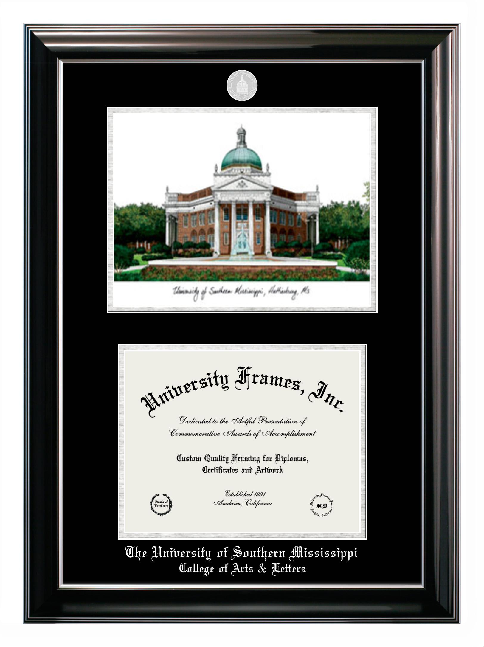 University of Southern Mississippi College of Arts & Letters diploma frames and degree frames are the perfect graduation gifts for recent grads, or anyone who wants to preserve and display their hard-earned accomplishments. Our custom diploma frames are specifically made with the official University of Southern Mississippi College of Arts & Letters seal and are handcrafted to meet high-quality standards. We guarantee that you will love our graduation frames. Start customizing your frame now!