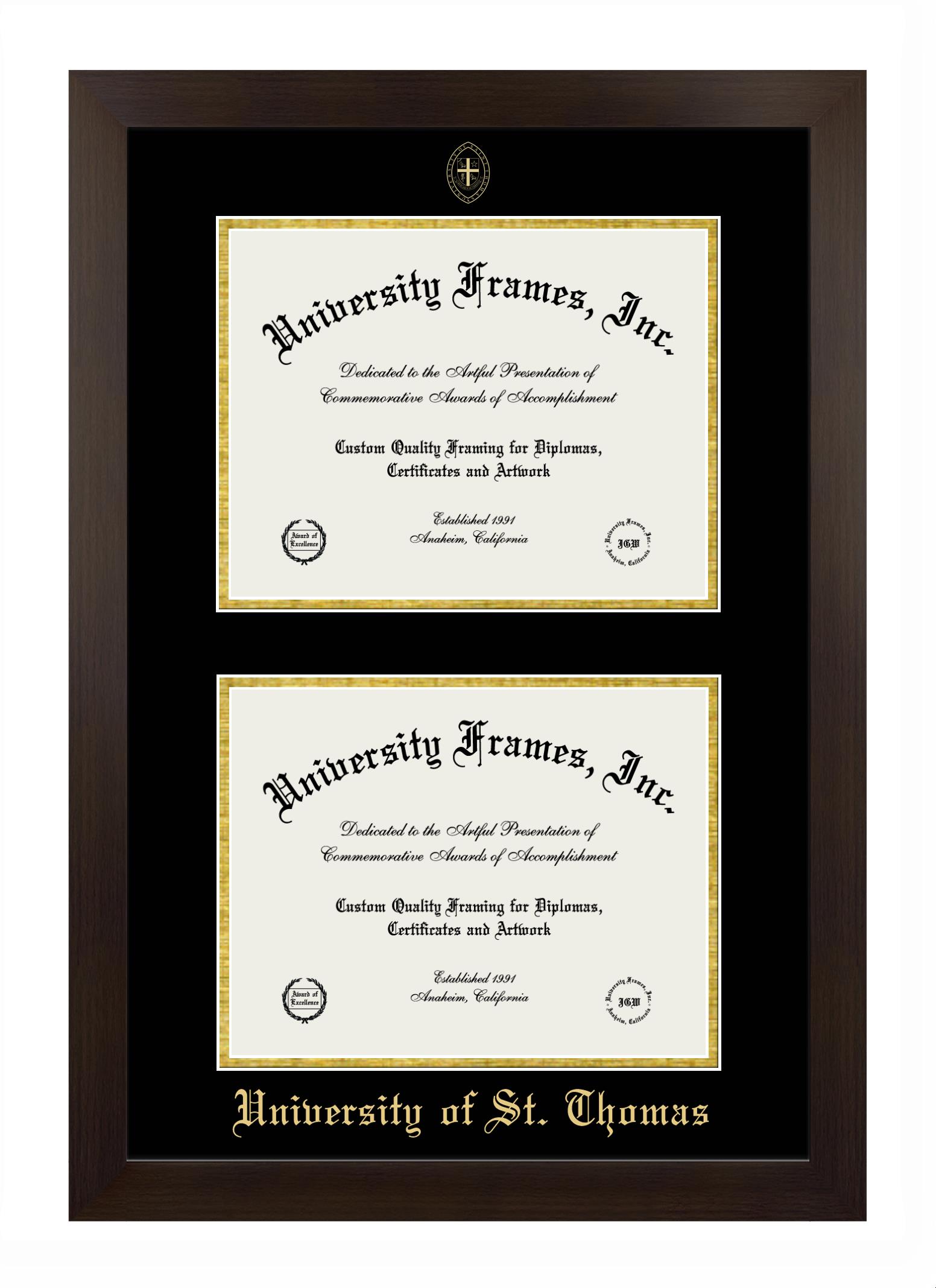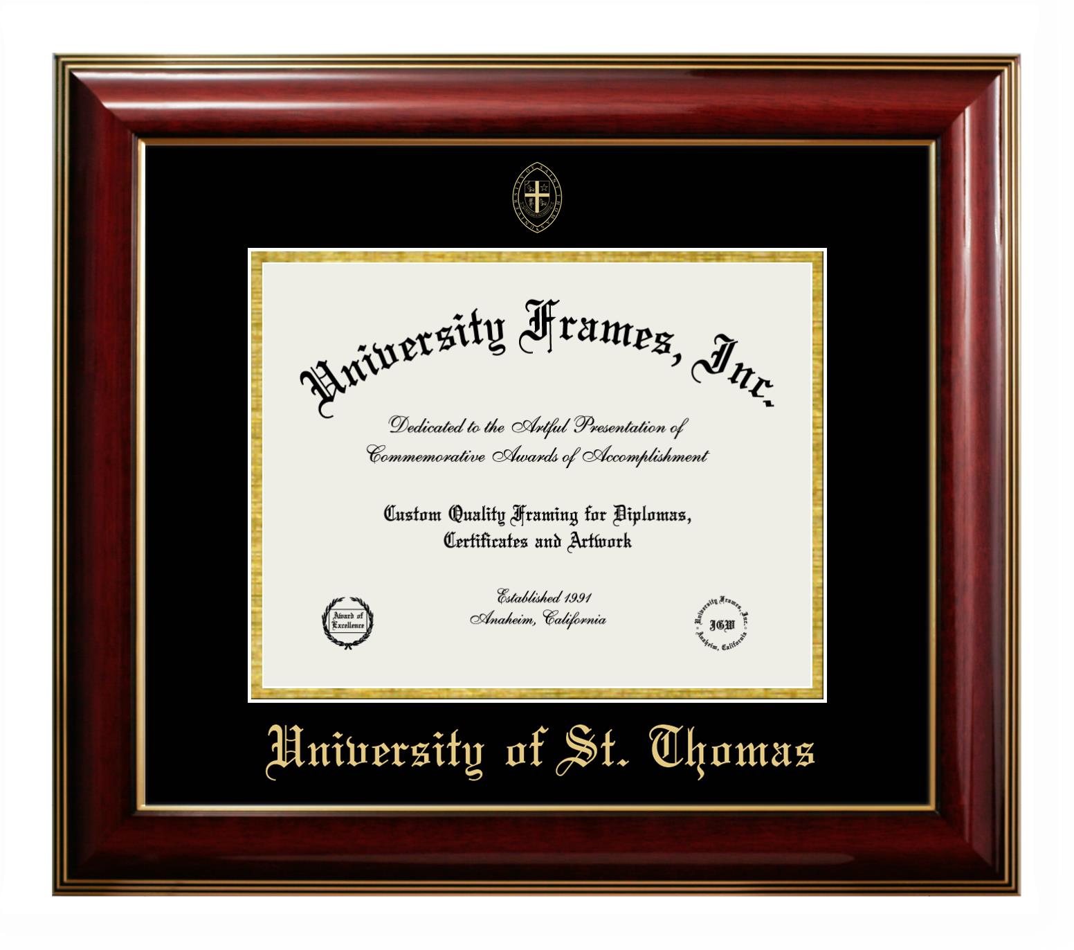 University of St. Thomas (Texas) diploma frames and degree frames are the perfect graduation gifts for recent grads, or anyone who wants to preserve and display their hard-earned accomplishments. Our custom diploma frames are specifically made with the official University of St. Thomas (Texas) seal and are handcrafted to meet high-quality standards. We guarantee that you will love our graduation frames. Start customizing your frame now!