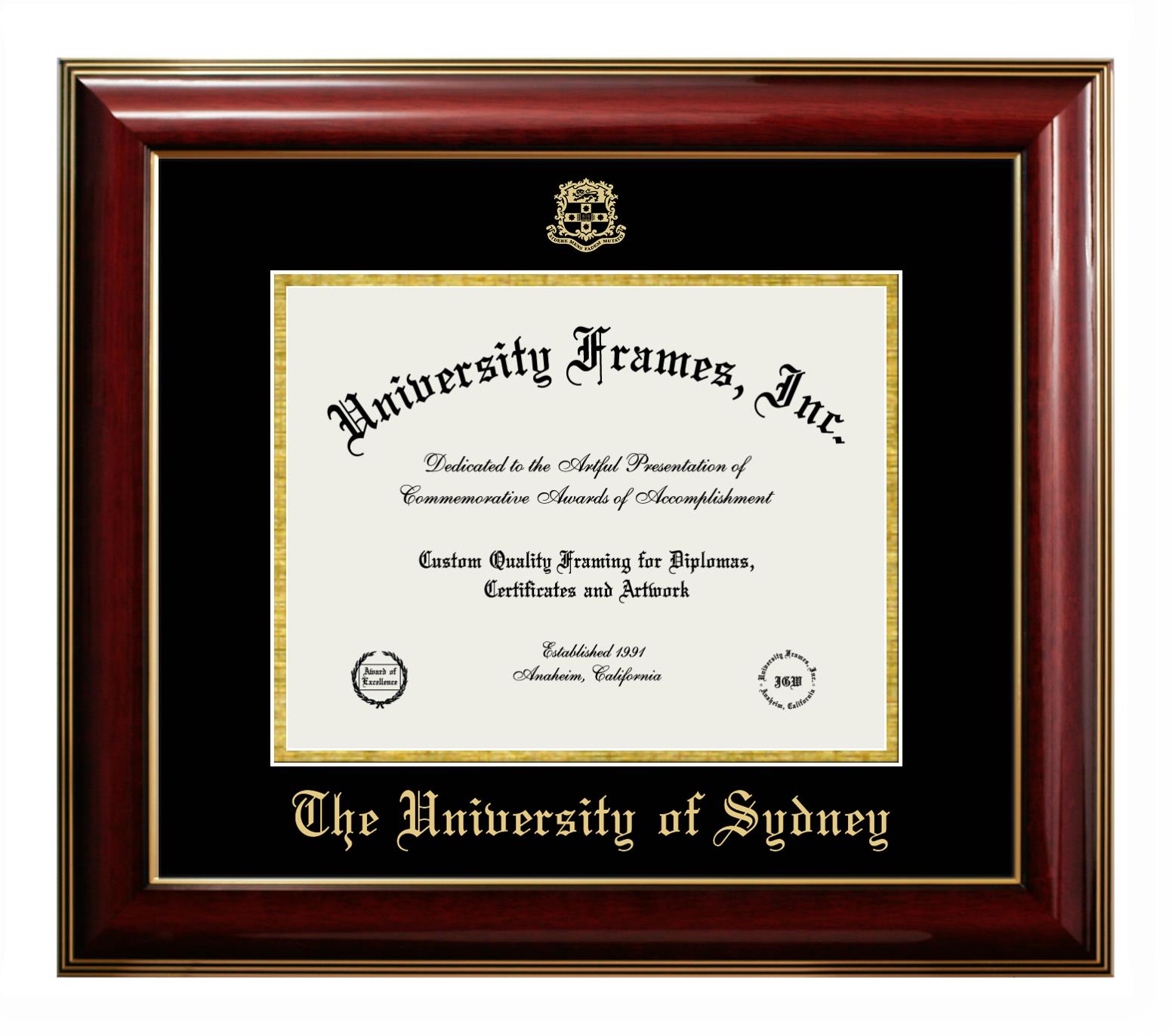 University of Sydney diploma frames and degree frames are the perfect graduation gifts for recent grads, or anyone who wants to preserve and display their hard-earned accomplishments. Our custom diploma frames are specifically made with the official University of Sydney seal and are handcrafted to meet high-quality standards. We guarantee that you will love our graduation frames. Start customizing your frame now!