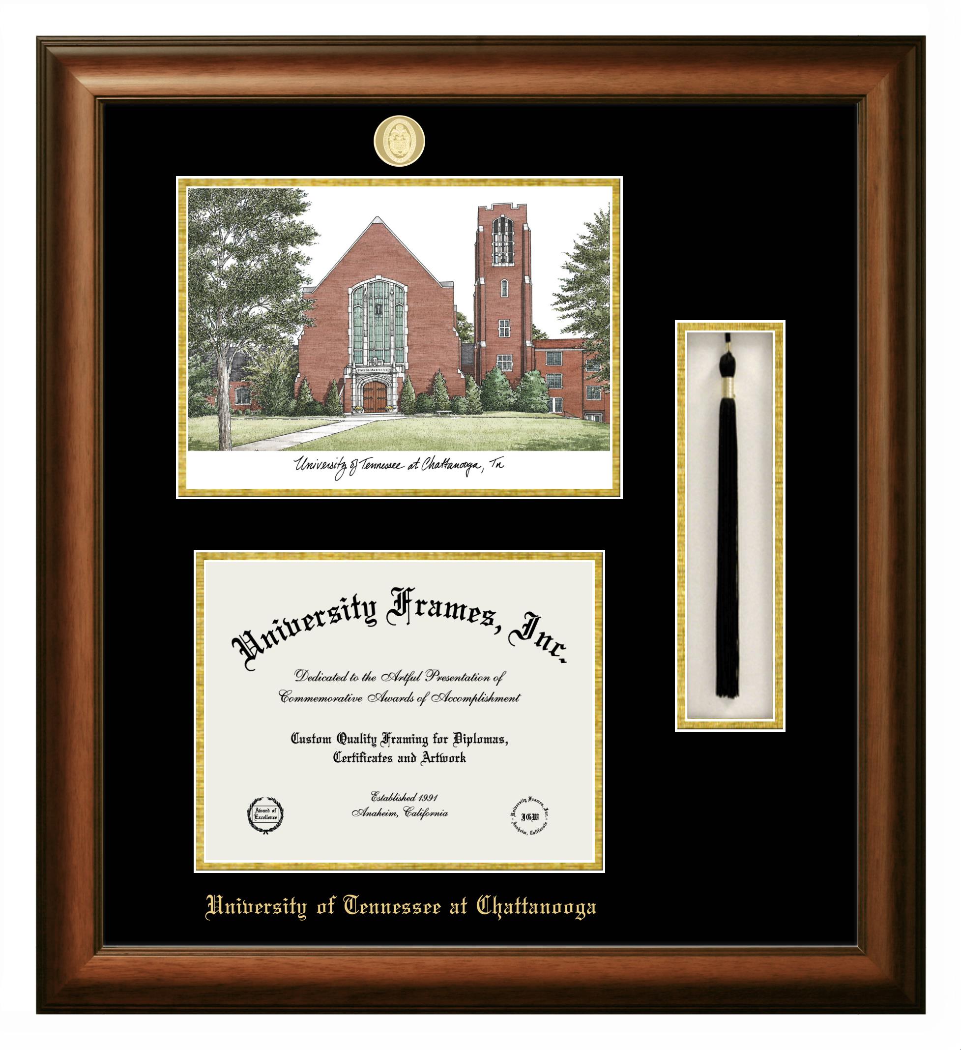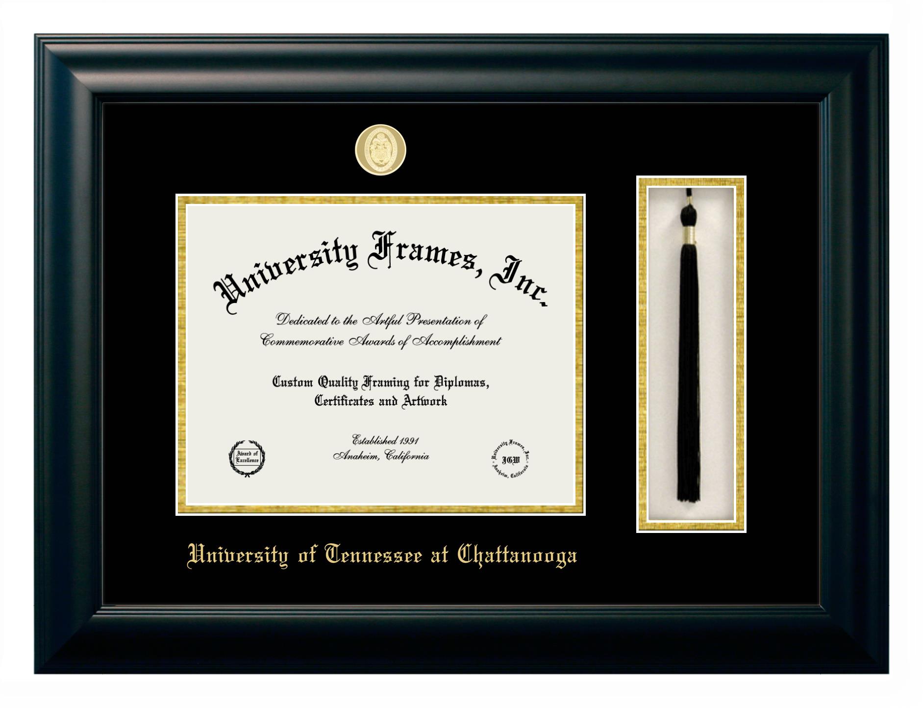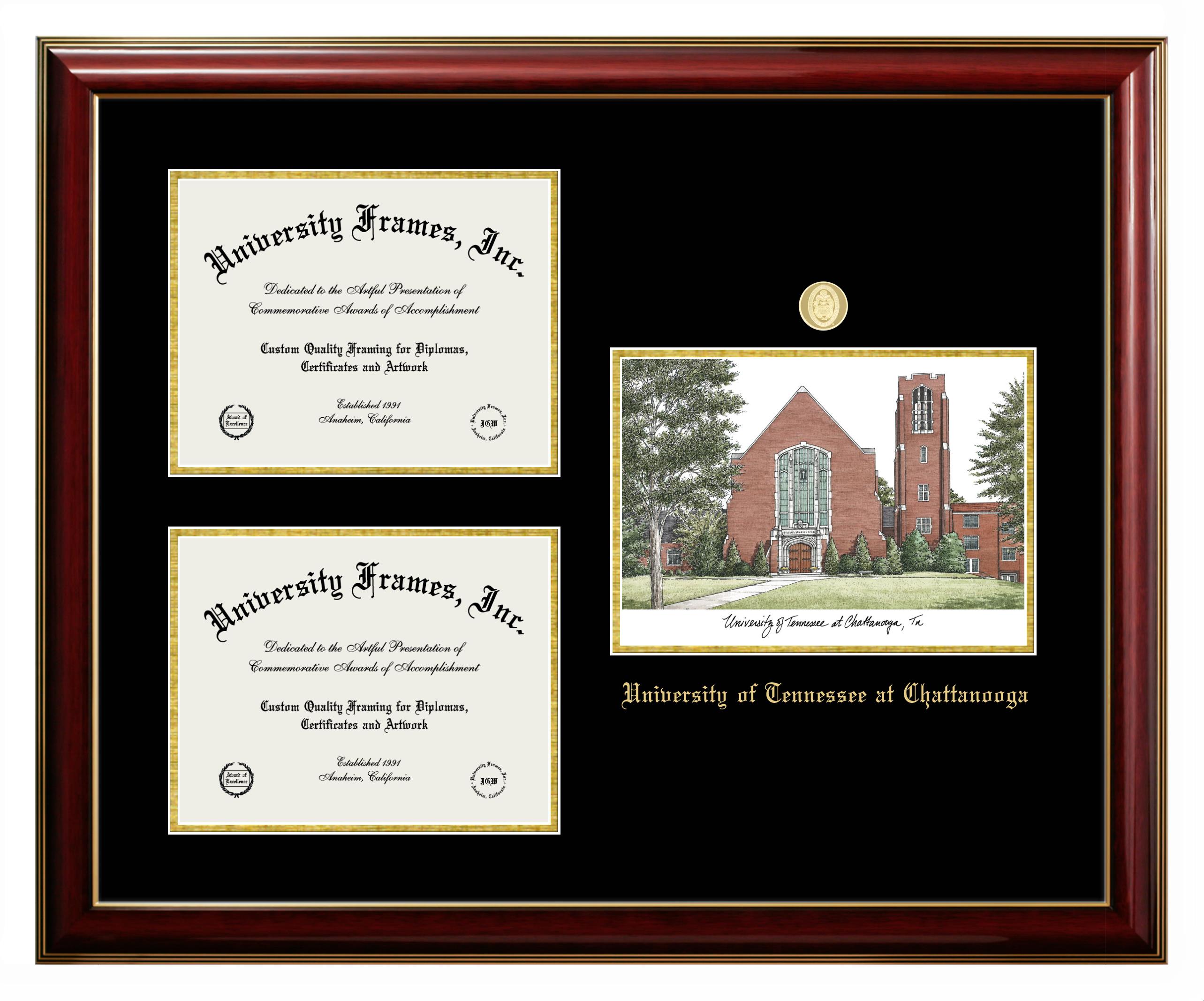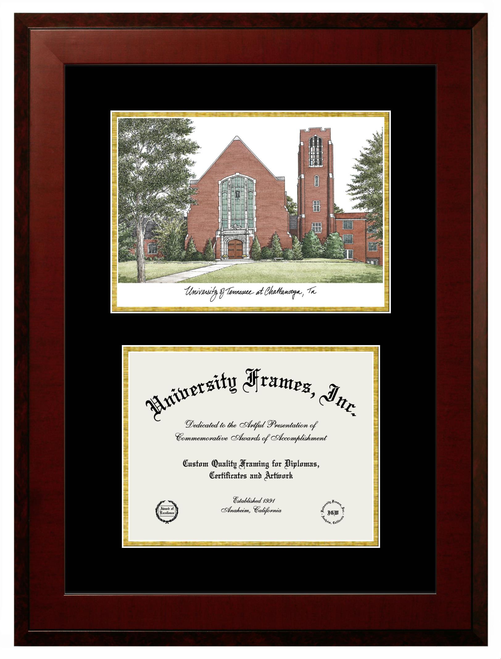 University of Tennessee at Chattanooga diploma frames and degree frames are the perfect graduation gifts for recent grads, or anyone who wants to preserve and display their hard-earned accomplishments. Our custom diploma frames are specifically made with the official University of Tennessee at Chattanooga seal and are handcrafted to meet high-quality standards. We guarantee that you will love our graduation frames. Start customizing your frame now!
