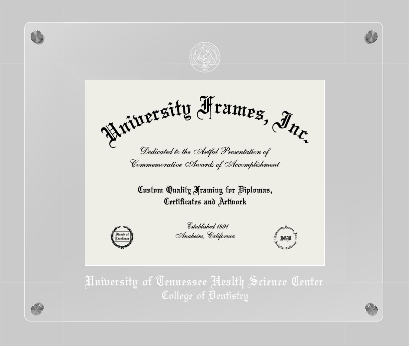 University of Tennessee Health Science Center College of Dentistry diploma frames and degree frames are the perfect graduation gifts for recent grads, or anyone who wants to preserve and display their hard-earned accomplishments. Our custom diploma frames are specifically made with the official University of Tennessee Health Science Center College of Dentistry seal and are handcrafted to meet high-quality standards. We guarantee that you will love our graduation frames. Start customizing your frame now!
