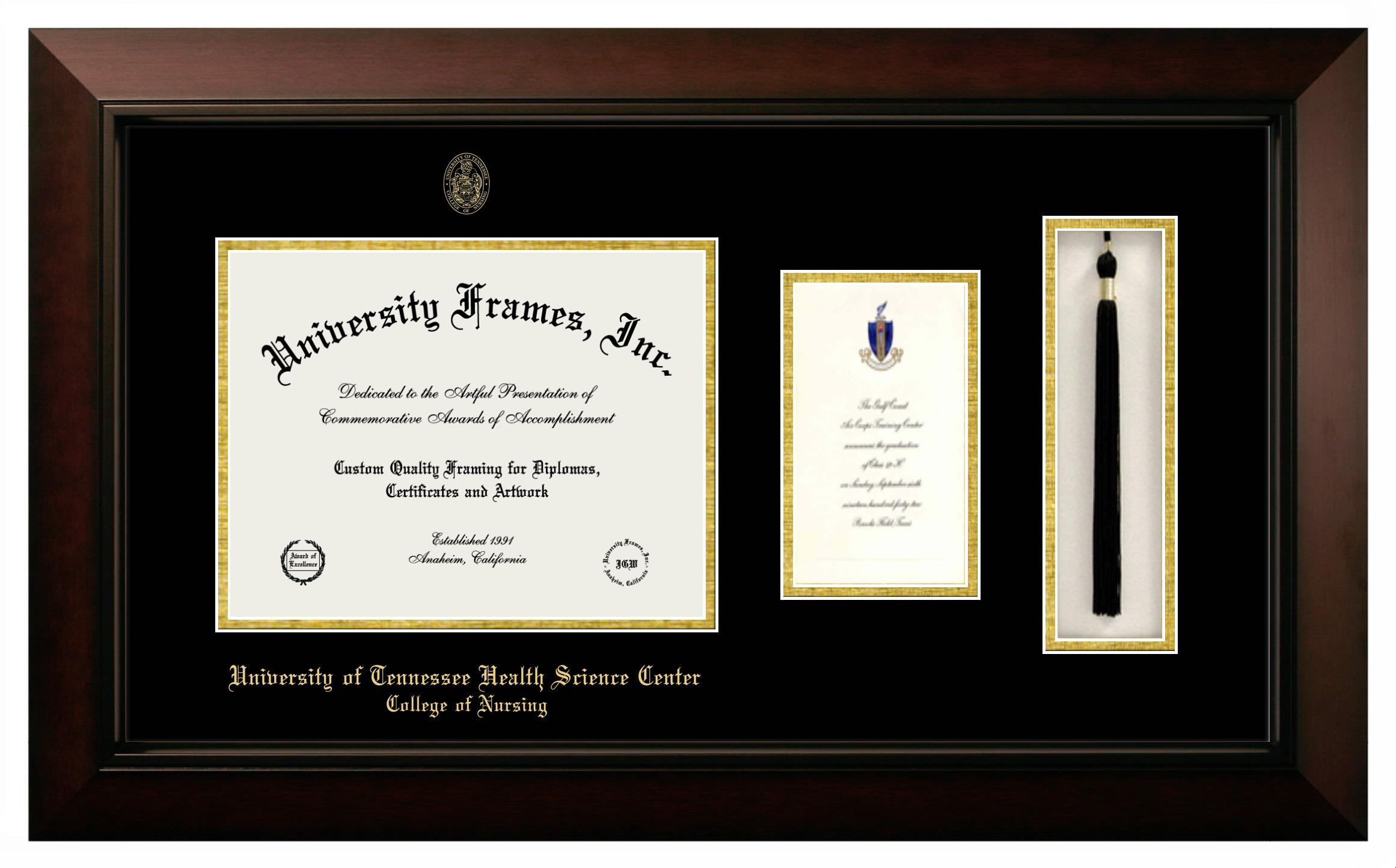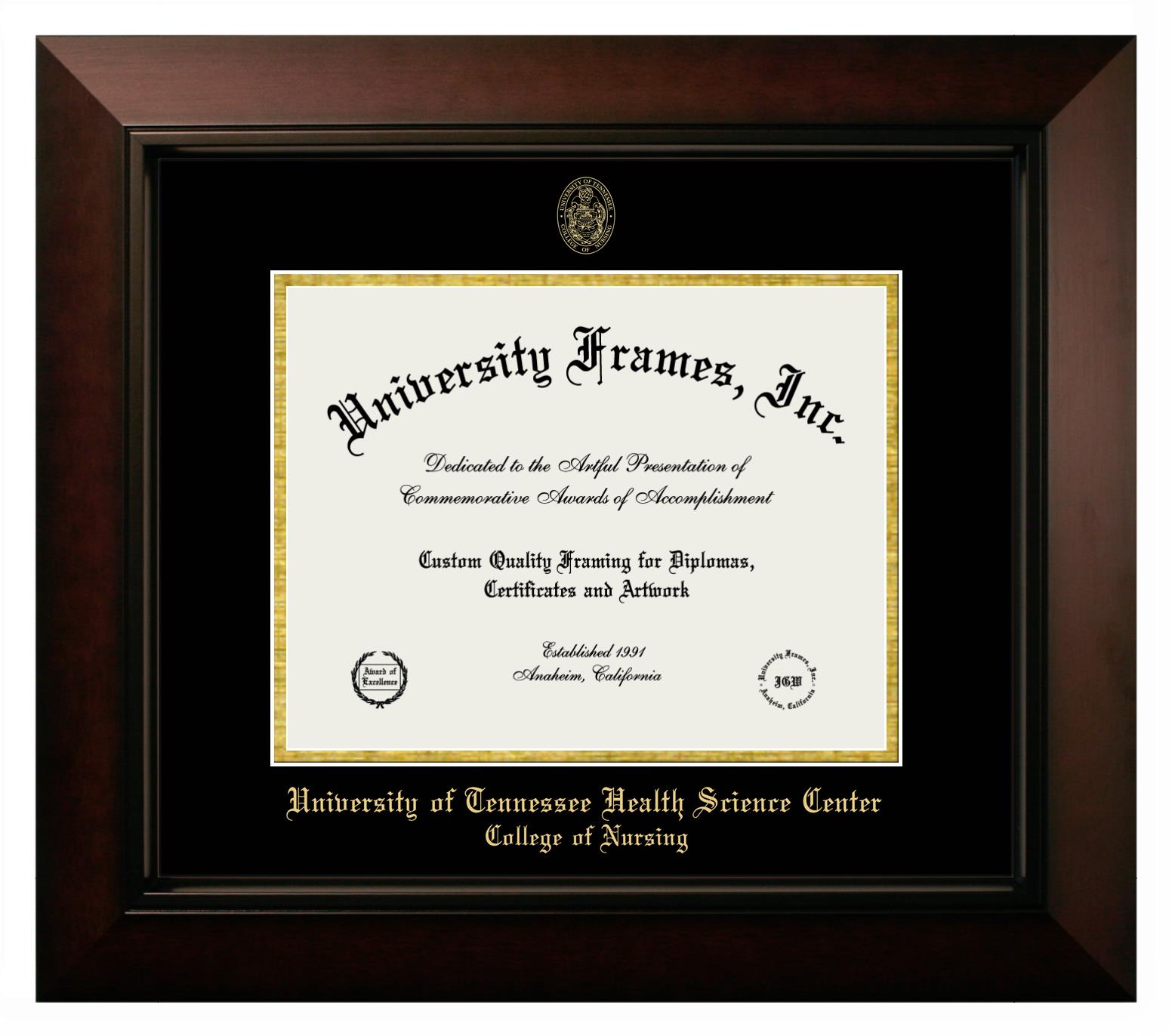 University of Tennessee Health Science Center College of Nursing diploma frames and degree frames are the perfect graduation gifts for recent grads, or anyone who wants to preserve and display their hard-earned accomplishments. Our custom diploma frames are specifically made with the official University of Tennessee Health Science Center College of Nursing seal and are handcrafted to meet high-quality standards. We guarantee that you will love our graduation frames. Start customizing your frame now!
