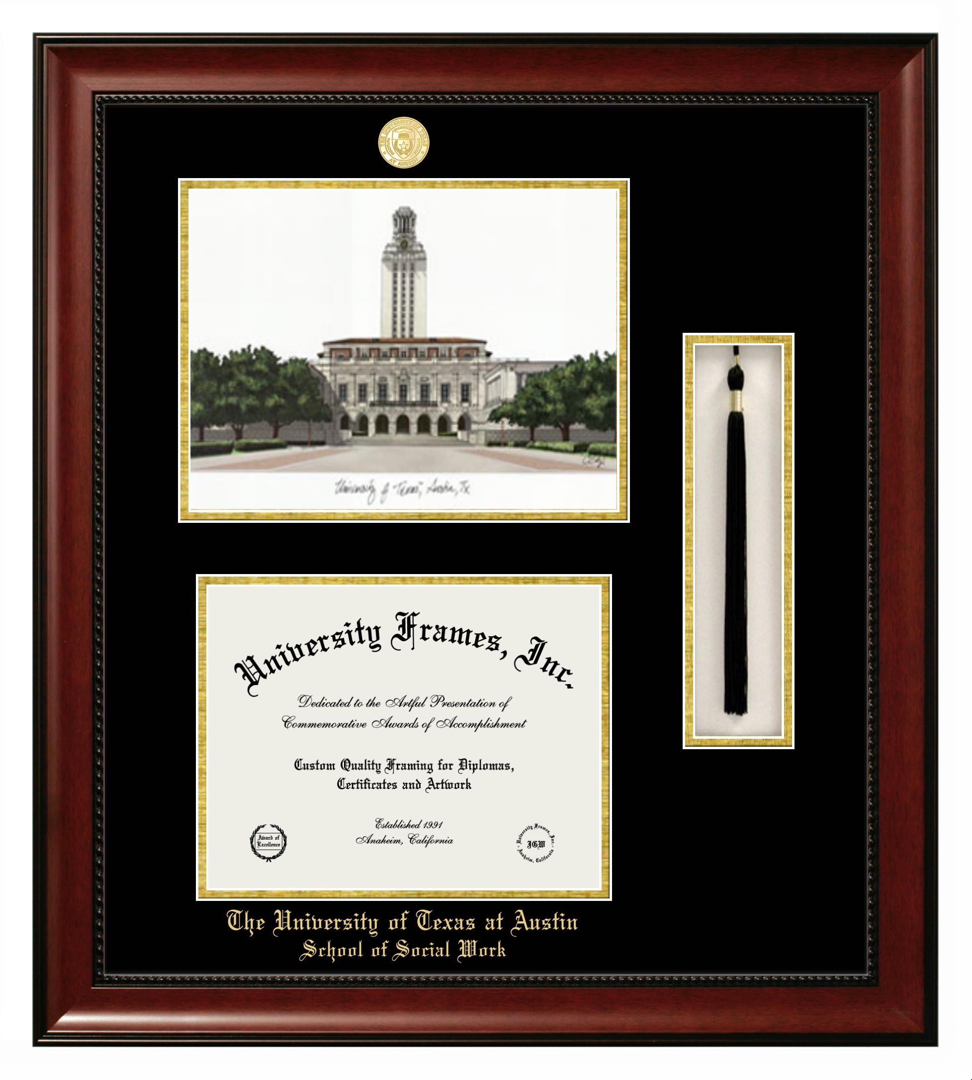 University of Texas at Austin School of Social Work diploma frames and degree frames are the perfect graduation gifts for recent grads, or anyone who wants to preserve and display their hard-earned accomplishments. Our custom diploma frames are specifically made with the official University of Texas at Austin School of Social Work seal and are handcrafted to meet high-quality standards. We guarantee that you will love our graduation frames. Start customizing your frame now!