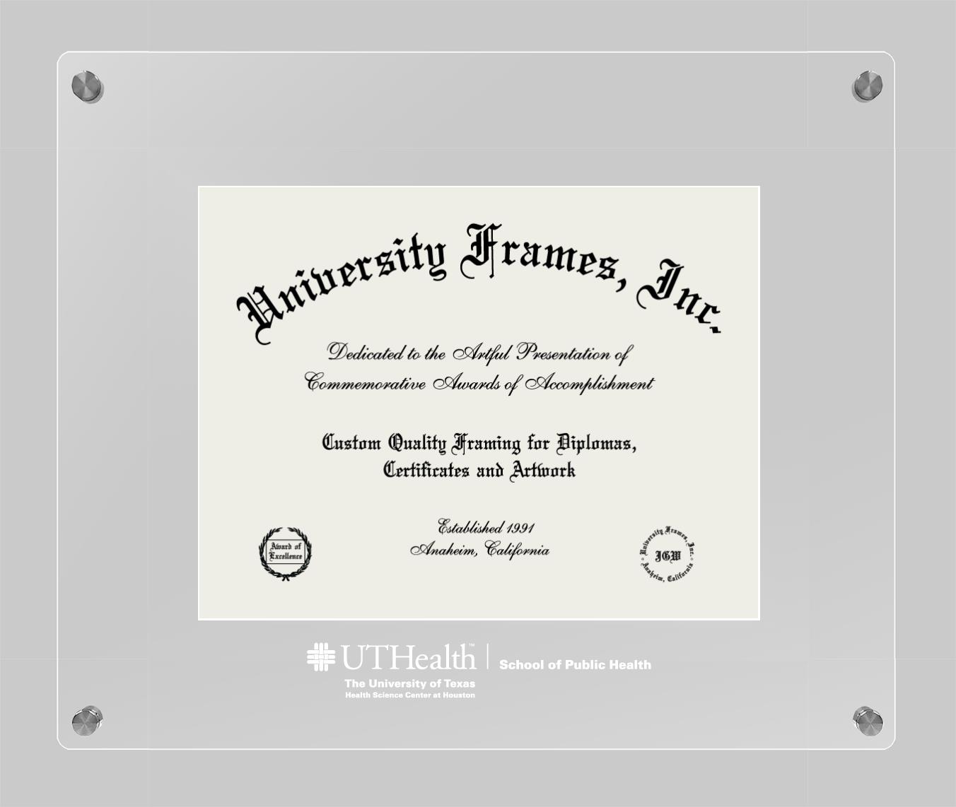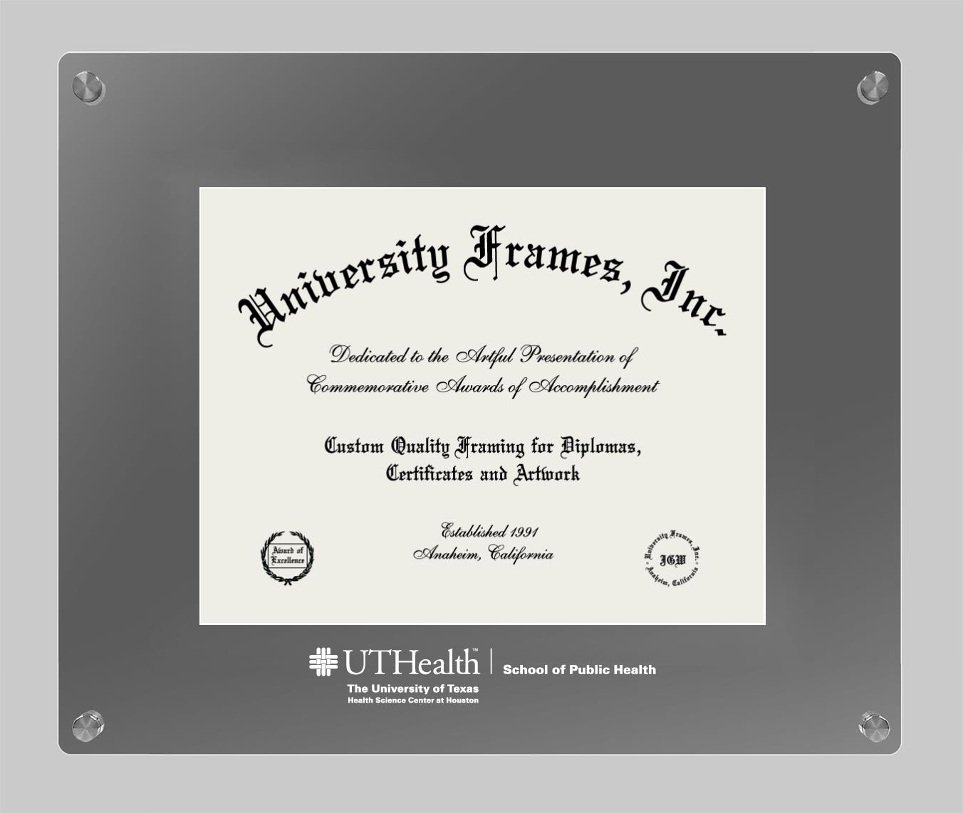 University of Texas Health Science Center at Houston School of Public Health diploma frames and degree frames are the perfect graduation gifts for recent grads, or anyone who wants to preserve and display their hard-earned accomplishments. Our custom diploma frames are specifically made with the official University of Texas Health Science Center at Houston School of Public Health seal and are handcrafted to meet high-quality standards. We guarantee that you will love our graduation frames. Start customizing your frame now!