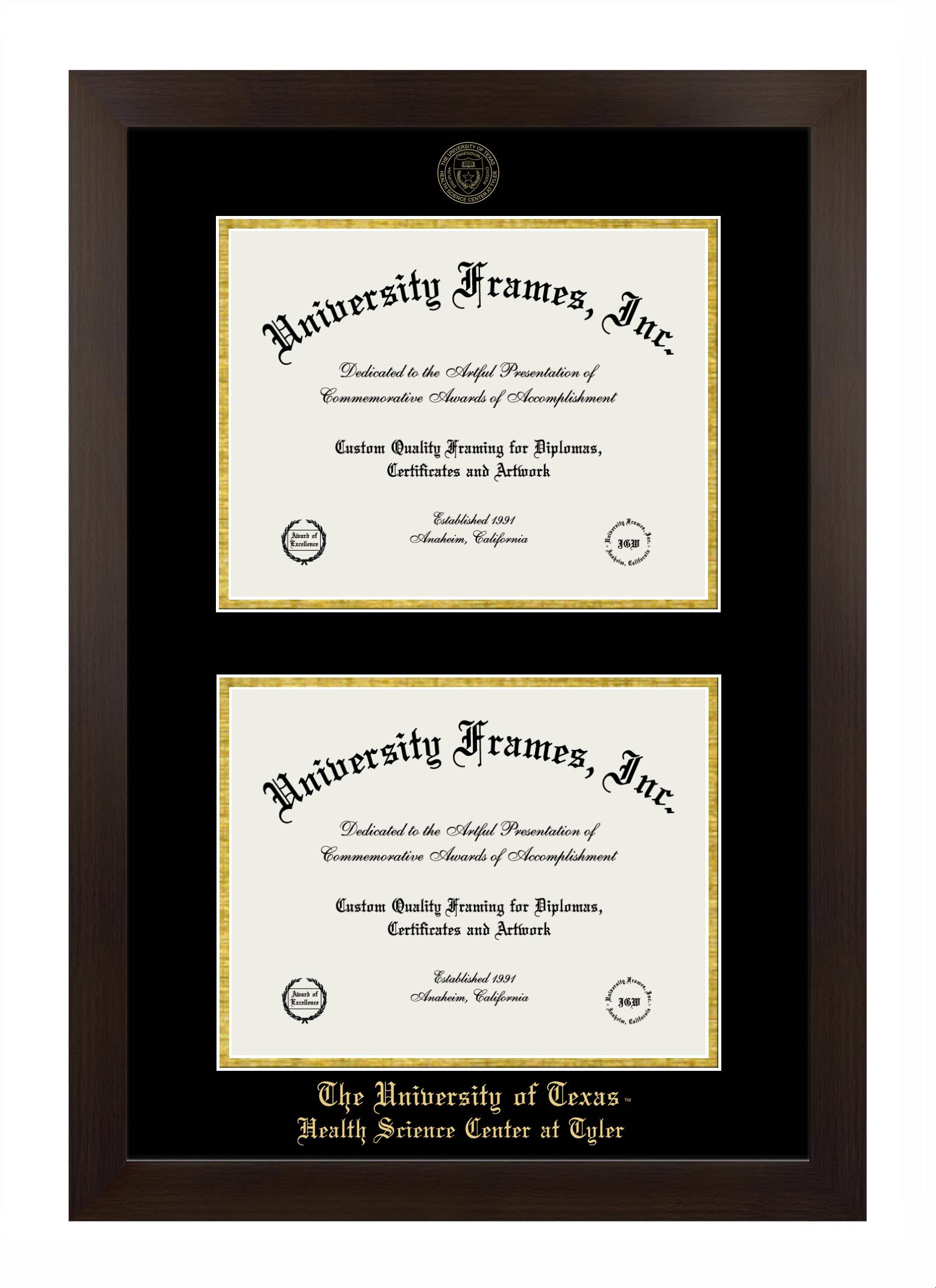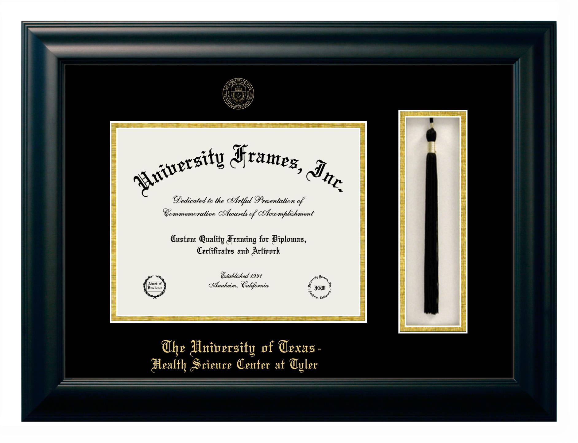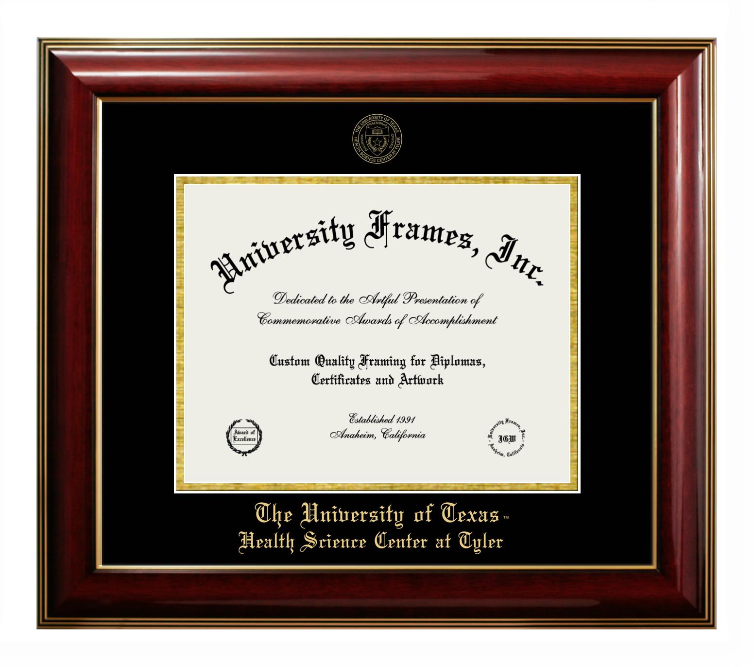 University of Texas Health Science Center at Tyler diploma frames and degree frames are the perfect graduation gifts for recent grads, or anyone who wants to preserve and display their hard-earned accomplishments. Our custom diploma frames are specifically made with the official University of Texas Health Science Center at Tyler seal and are handcrafted to meet high-quality standards. We guarantee that you will love our graduation frames. Start customizing your frame now!