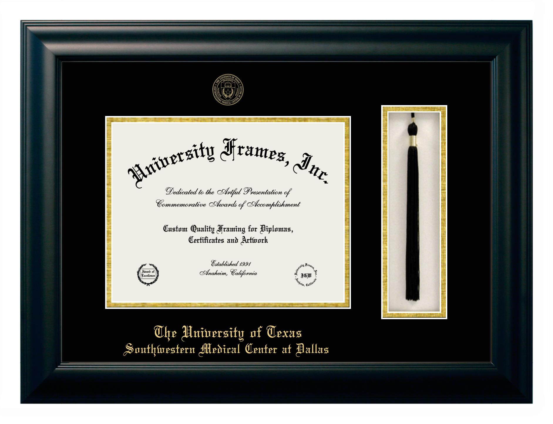 University of Texas Southwestern Medical Center at Dallas diploma frames and degree frames are the perfect graduation gifts for recent grads, or anyone who wants to preserve and display their hard-earned accomplishments. Our custom diploma frames are specifically made with the official University of Texas Southwestern Medical Center at Dallas seal and are handcrafted to meet high-quality standards. We guarantee that you will love our graduation frames. Start customizing your frame now!