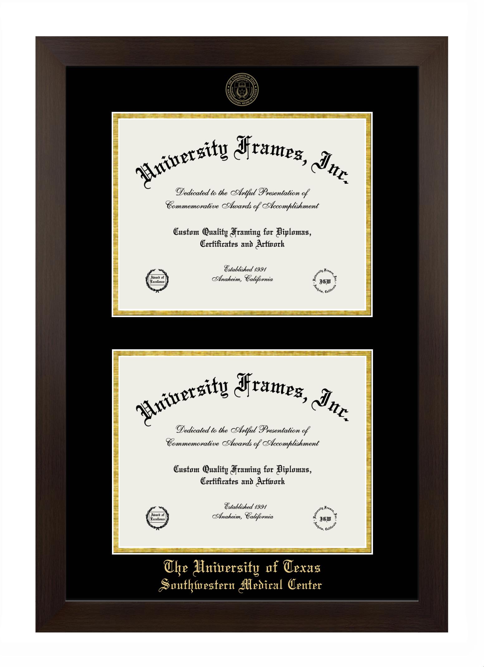 University of Texas Southwestern Medical Center diploma frames and degree frames are the perfect graduation gifts for recent grads, or anyone who wants to preserve and display their hard-earned accomplishments. Our custom diploma frames are specifically made with the official University of Texas Southwestern Medical Center seal and are handcrafted to meet high-quality standards. We guarantee that you will love our graduation frames. Start customizing your frame now!