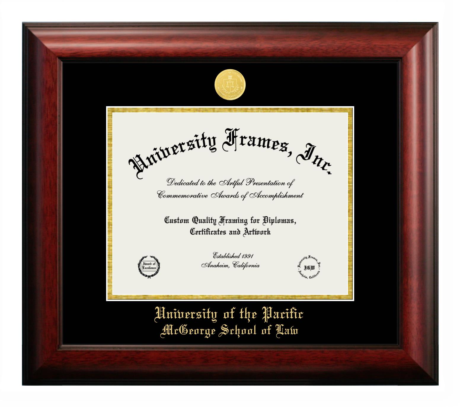 University of the Pacific McGeorge School of Law diploma frames and degree frames are the perfect graduation gifts for recent grads, or anyone who wants to preserve and display their hard-earned accomplishments. Our custom diploma frames are specifically made with the official University of the Pacific McGeorge School of Law seal and are handcrafted to meet high-quality standards. We guarantee that you will love our graduation frames. Start customizing your frame now!