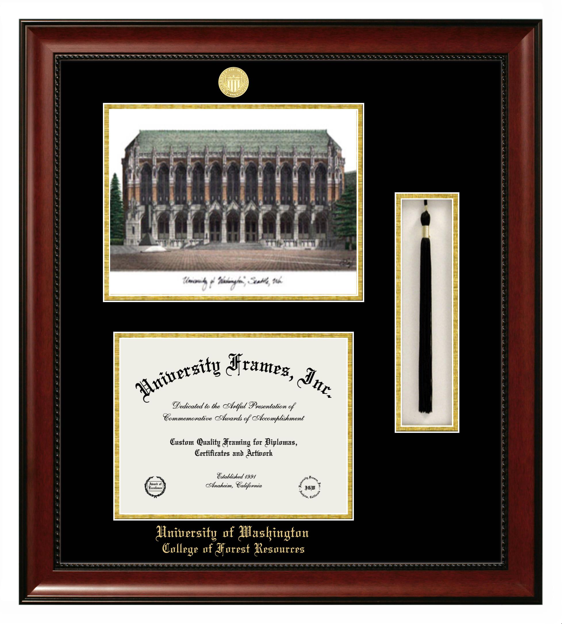 University of Washington College of Forest Resources diploma frames and degree frames are the perfect graduation gifts for recent grads, or anyone who wants to preserve and display their hard-earned accomplishments. Our custom diploma frames are specifically made with the official University of Washington College of Forest Resources seal and are handcrafted to meet high-quality standards. We guarantee that you will love our graduation frames. Start customizing your frame now!