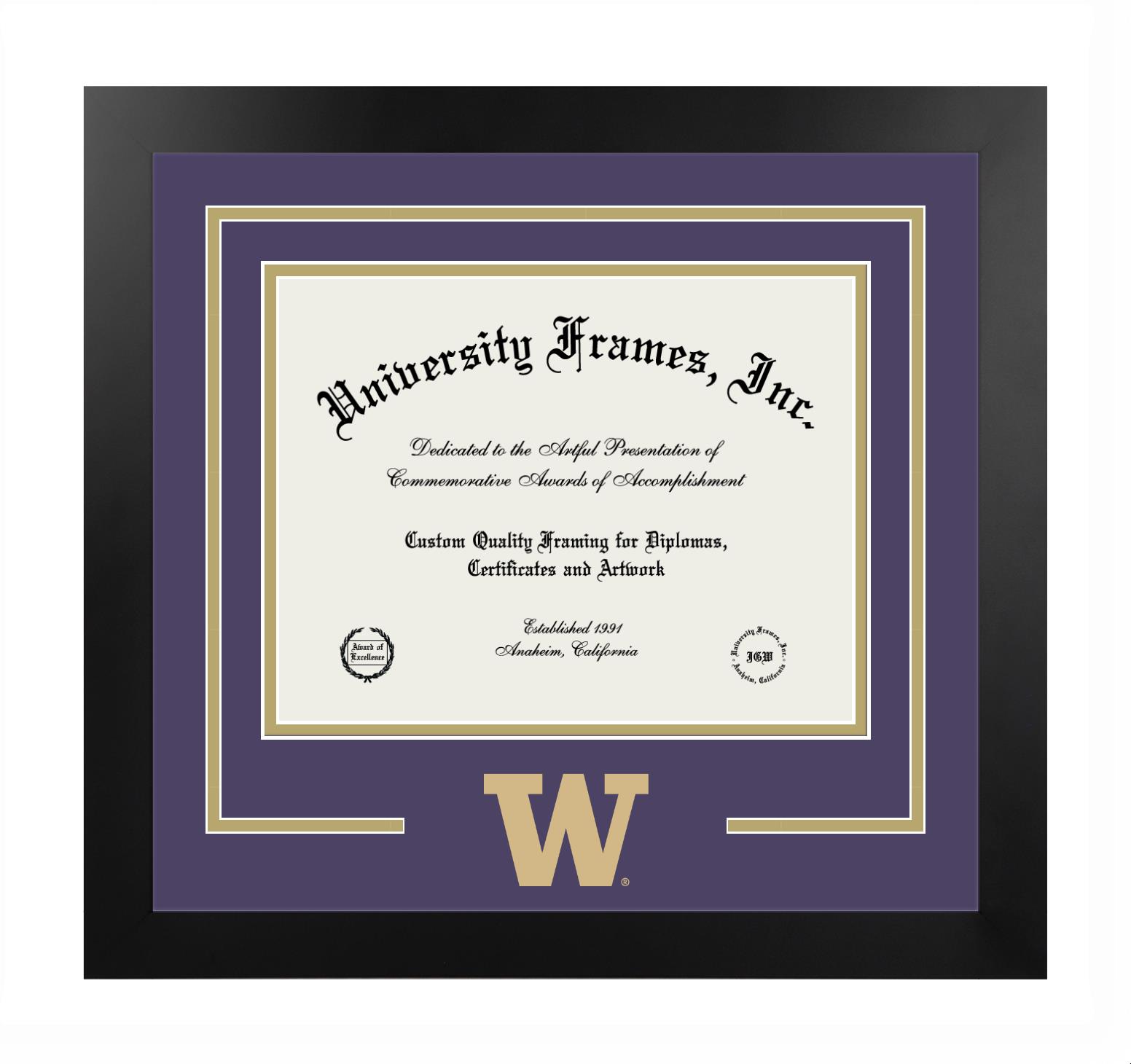 University of Washington College of the Environment diploma frames and degree frames are the perfect graduation gifts for recent grads, or anyone who wants to preserve and display their hard-earned accomplishments. Our custom diploma frames are specifically made with the official University of Washington College of the Environment seal and are handcrafted to meet high-quality standards. We guarantee that you will love our graduation frames. Start customizing your frame now!