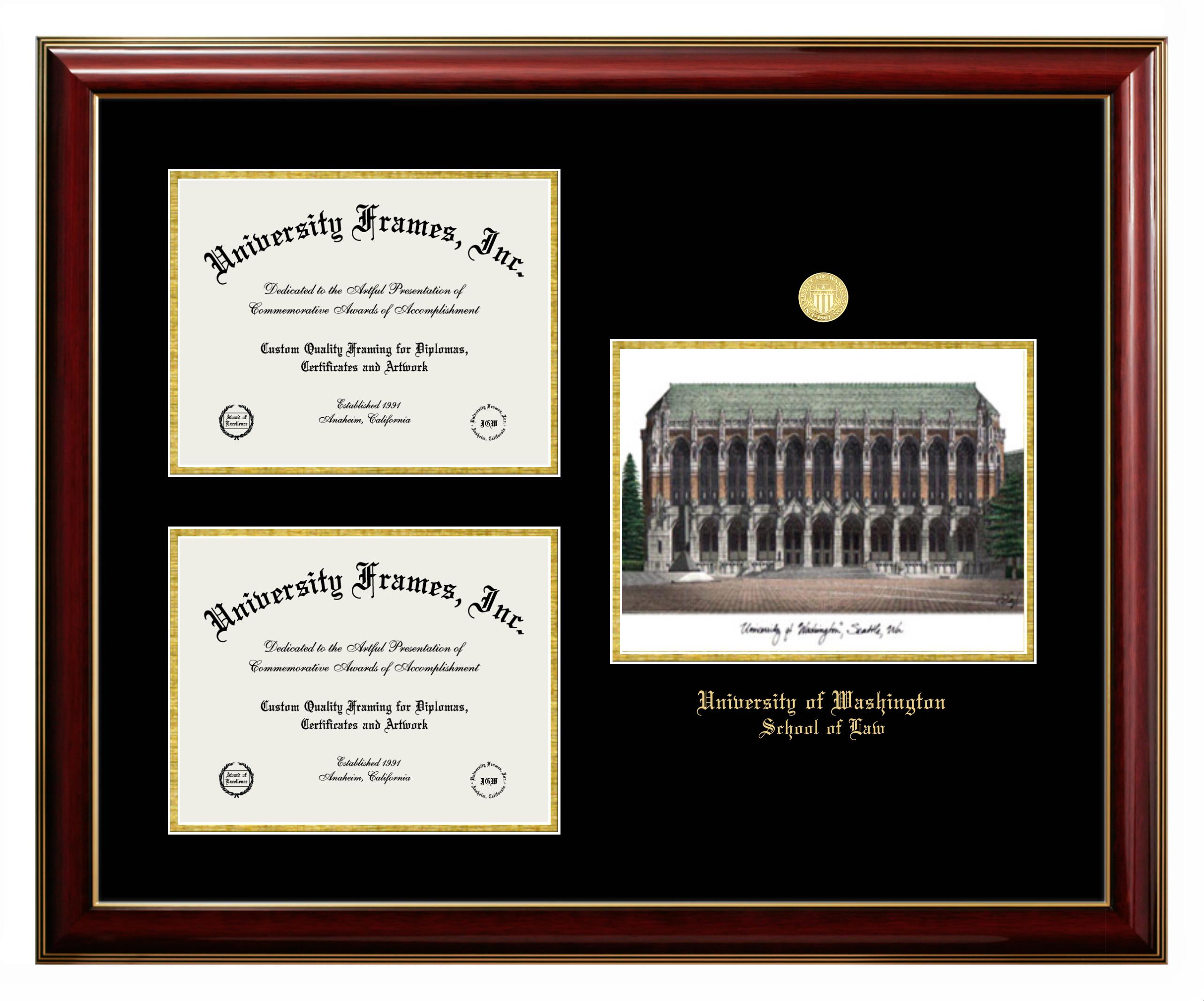 University of Washington School of Law diploma frames and degree frames are the perfect graduation gifts for recent grads, or anyone who wants to preserve and display their hard-earned accomplishments. Our custom diploma frames are specifically made with the official University of Washington School of Law seal and are handcrafted to meet high-quality standards. We guarantee that you will love our graduation frames. Start customizing your frame now!