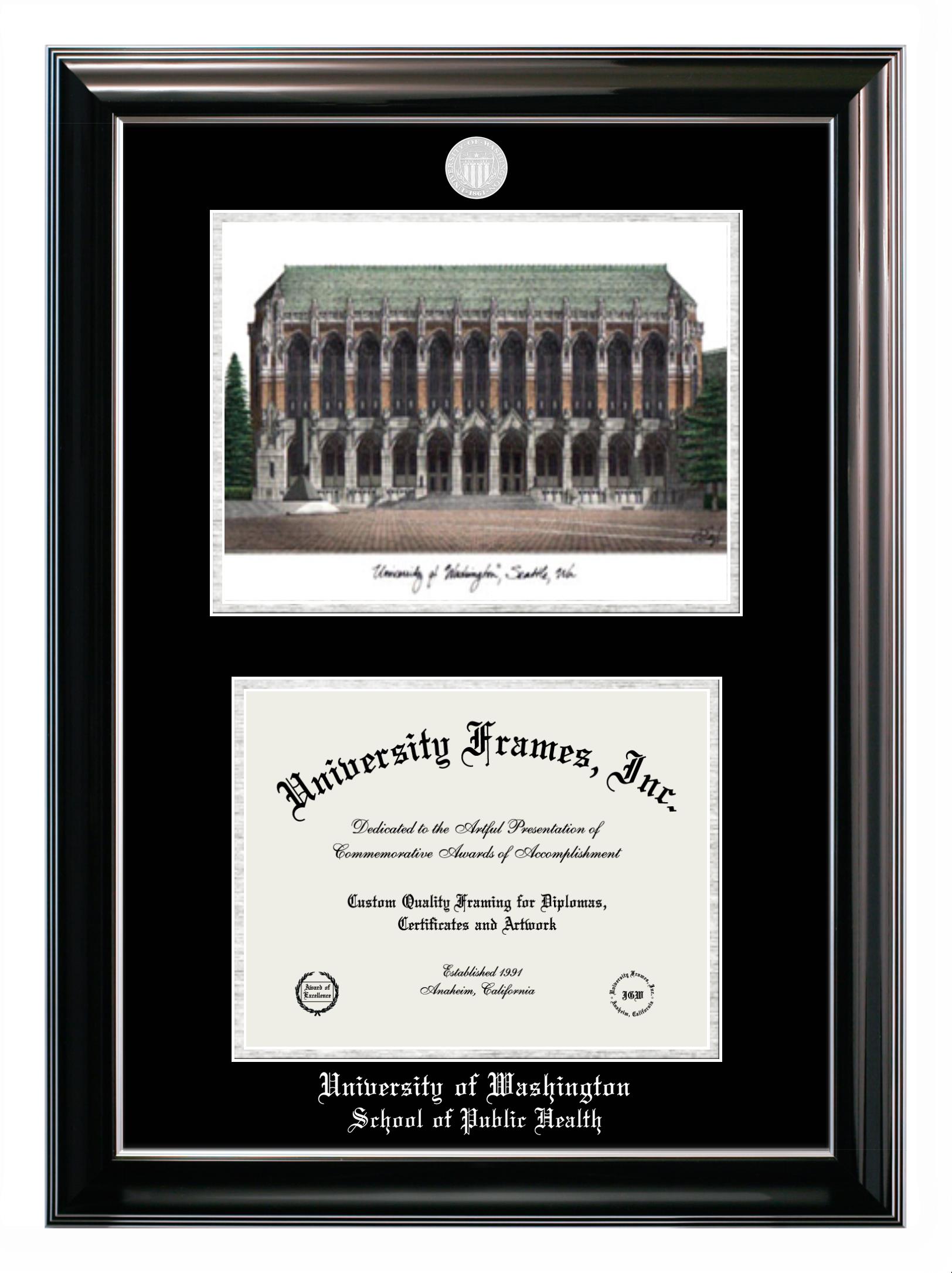 University of Washington School of Public Health diploma frames and degree frames are the perfect graduation gifts for recent grads, or anyone who wants to preserve and display their hard-earned accomplishments. Our custom diploma frames are specifically made with the official University of Washington School of Public Health seal and are handcrafted to meet high-quality standards. We guarantee that you will love our graduation frames. Start customizing your frame now!