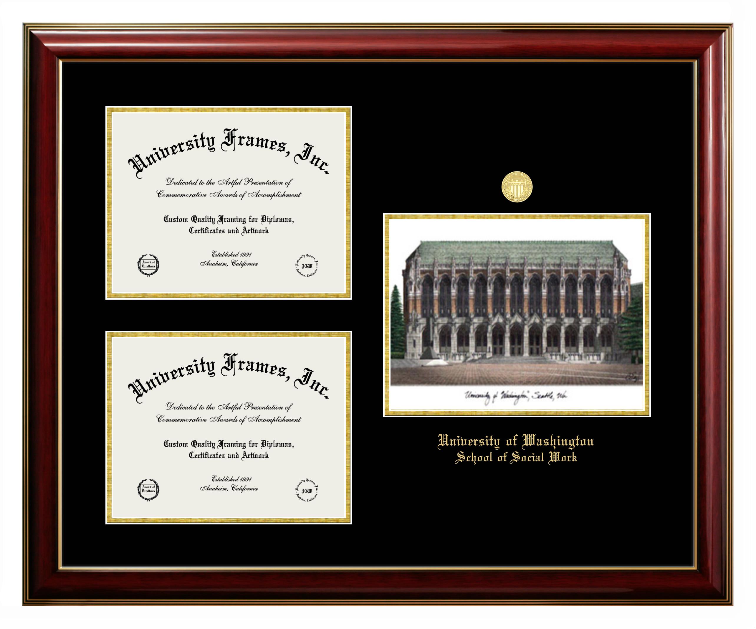 University of Washington School of Social Work diploma frames and degree frames are the perfect graduation gifts for recent grads, or anyone who wants to preserve and display their hard-earned accomplishments. Our custom diploma frames are specifically made with the official University of Washington School of Social Work seal and are handcrafted to meet high-quality standards. We guarantee that you will love our graduation frames. Start customizing your frame now!